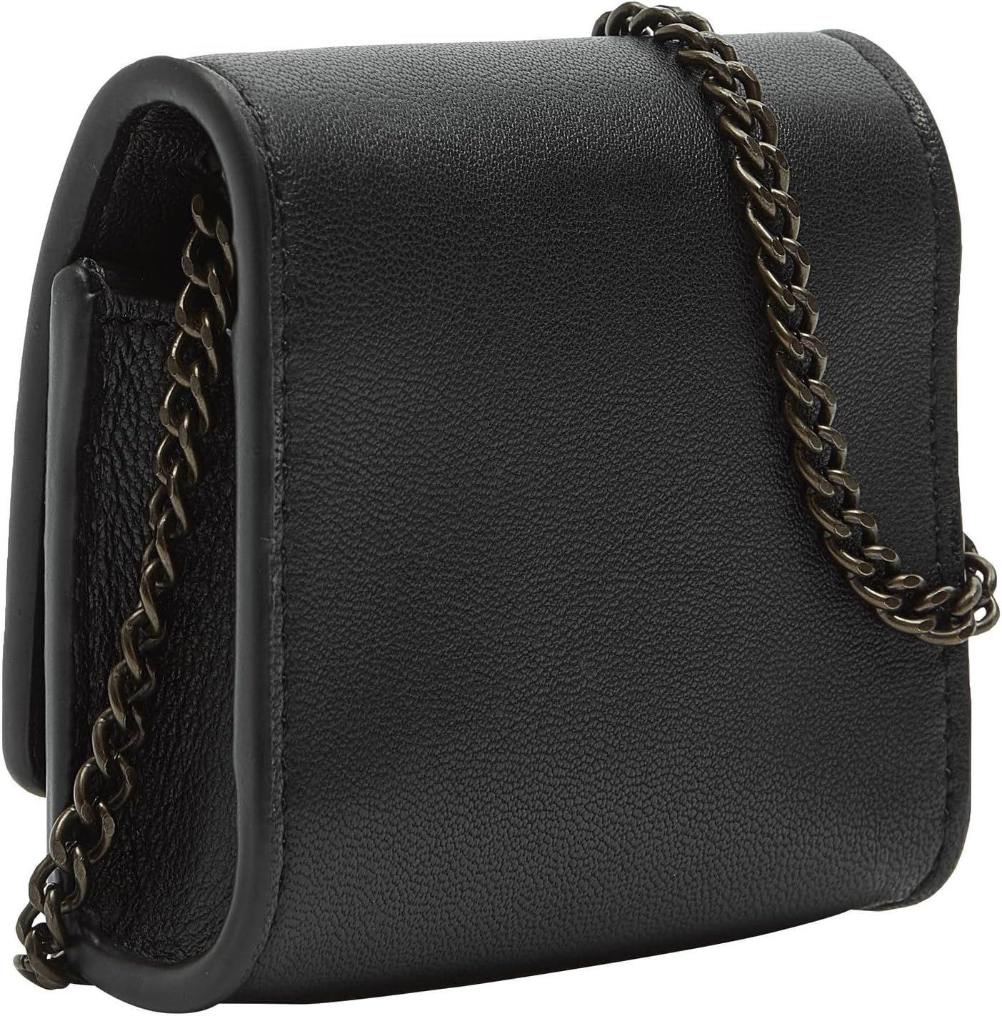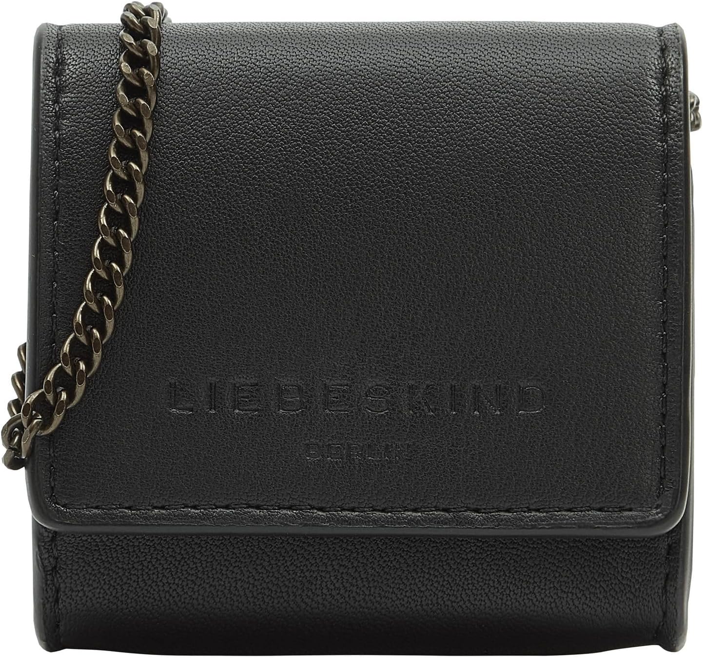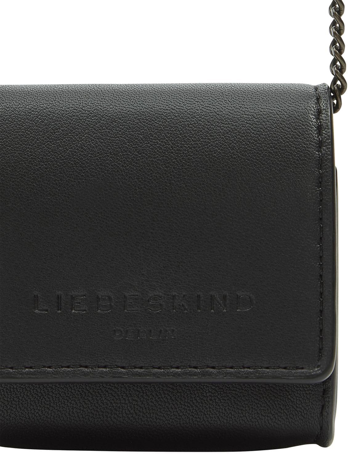 PRODUKTBESCHREIBUNGEN glattes und besonders weiches, natürliches Schafsleder, aufklappbares Hauptfach; Überschlag mit Druckknopfverschluss, Innenraum passend beispielsweise für Earpods, abnehmbarer Schultergurt aus Kette, integrierter RFID-Schutz, Vorderseite mit Logoprägung