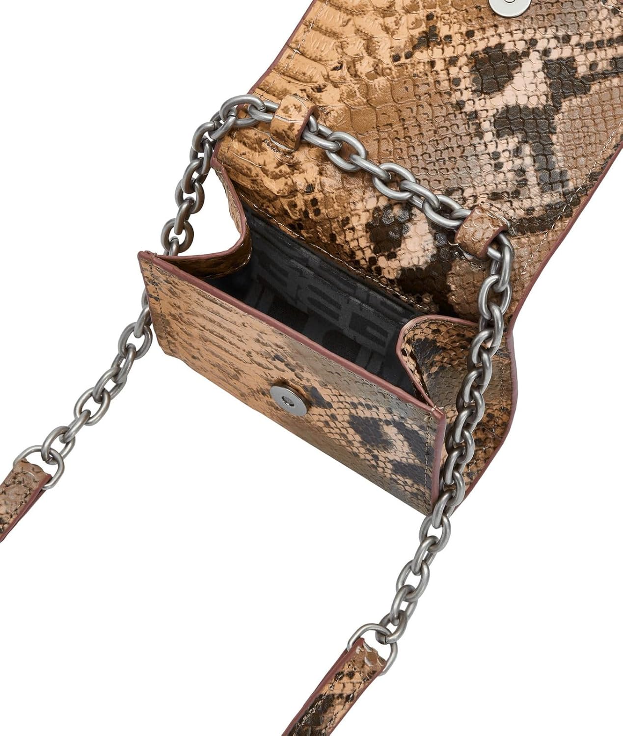 PRODUKTBESCHREIBUNGEN Weiches, genarbtes Glattleder; Moderner, frischer Look durch Kanten in Kontrastfarbe; Frontseite mit Logoprägung; Hauptfach mit Klappe und magnetischem Druckknopfverschluss; Innenraum mit zwei Kartensteckfächern, einem grossen sowie kleinen Steckfach; Verstellbarer Schultergurt aus Leder und einem Kettenelement, das nach belieben verschoben werden kann