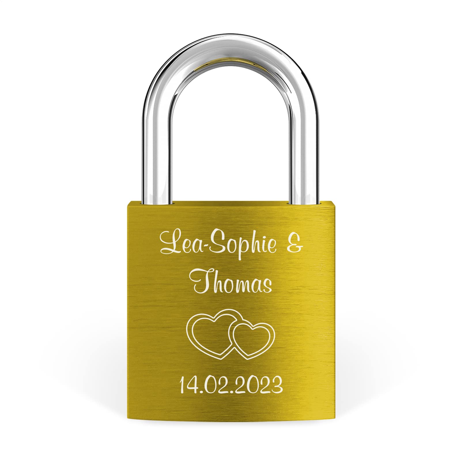 - DU BEKOMMST: Ein klassisches Vorhängeschloss mit zwei Schlüssel und persönlicher Laser-Gravur in Juwelierqualität - je nach Auswahl einseitig, beidseitig oder ohne Gravur