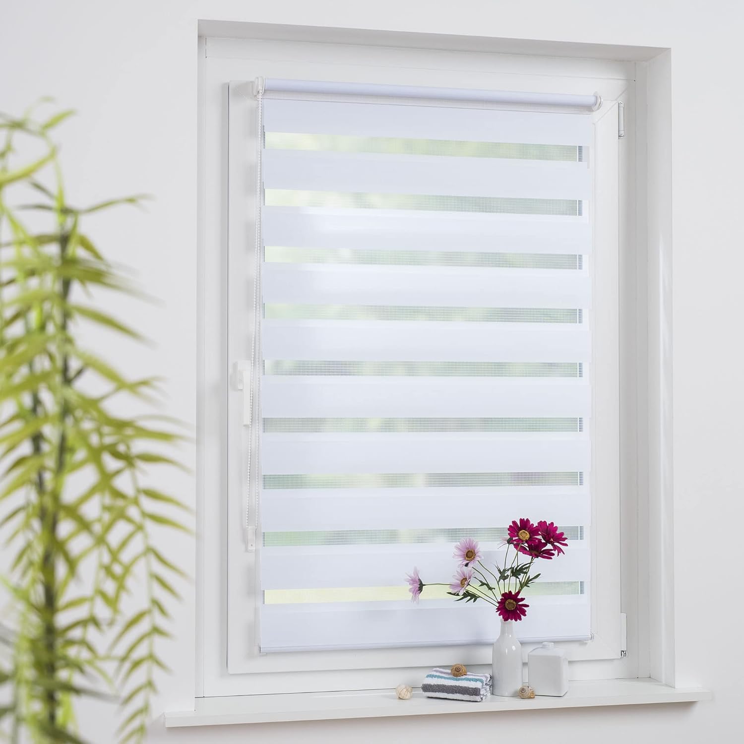 - Artikel: Tageslicht Rollo, Stoff lichtdurchlässig, modernes Duo-Rollo mit Kettenzug, Auszugshöhe nach Belieben frei einstellbar