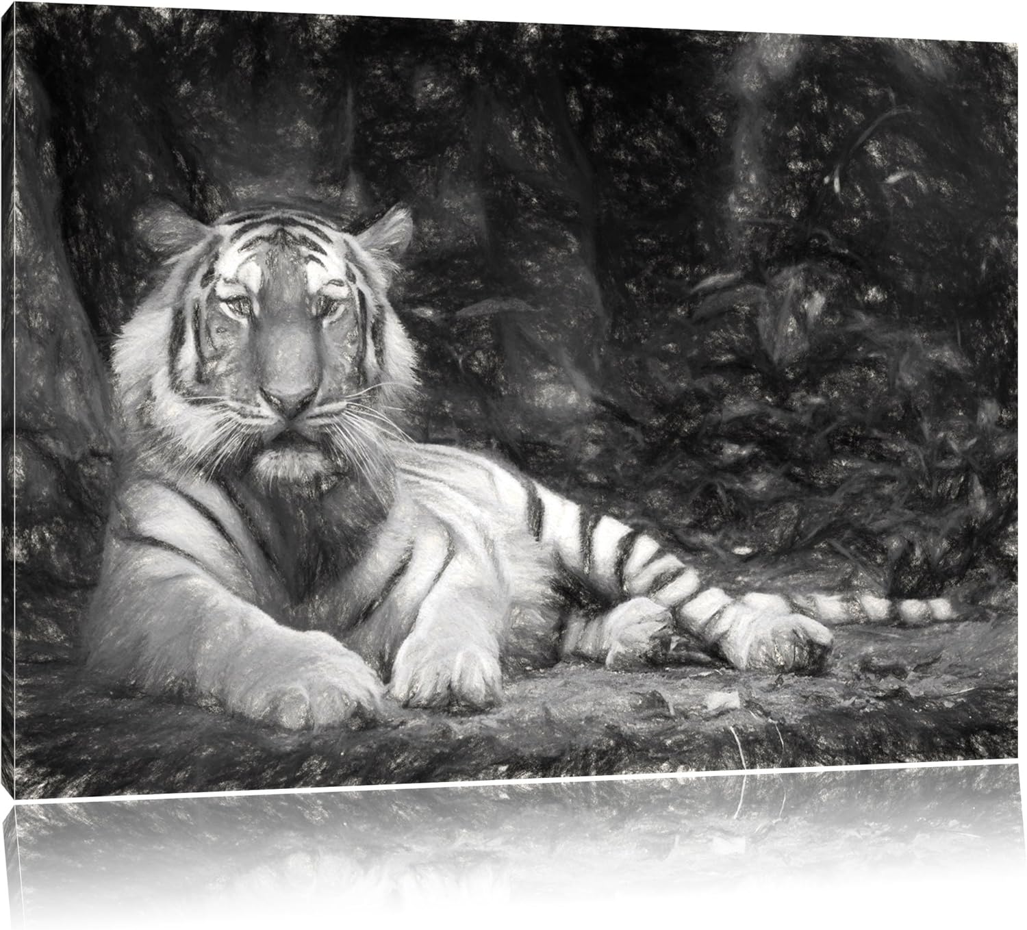 Liegender Tiger Deluxe Format: 100x70 cm auf Leinwand, XXL riesige Bilder fertig gerahmt mit Keilrah