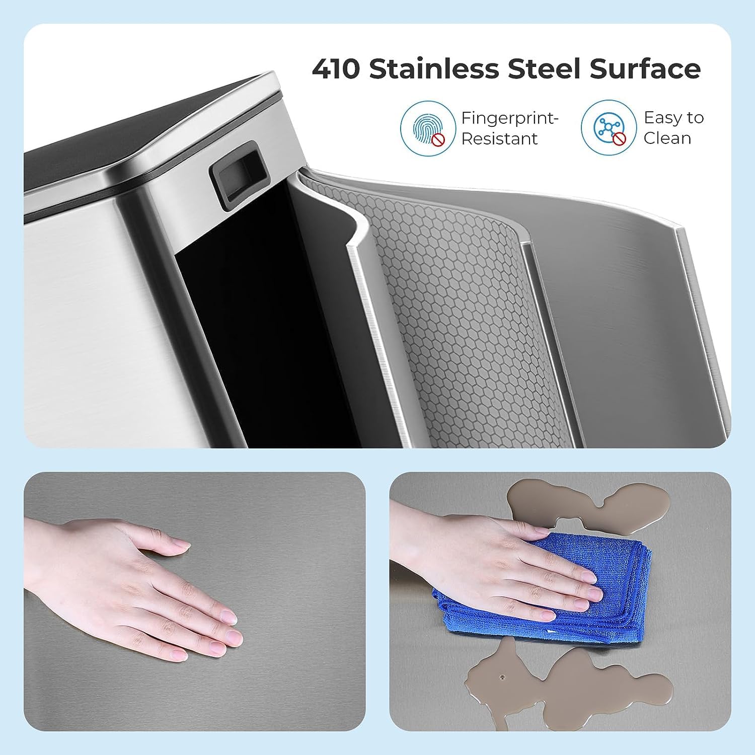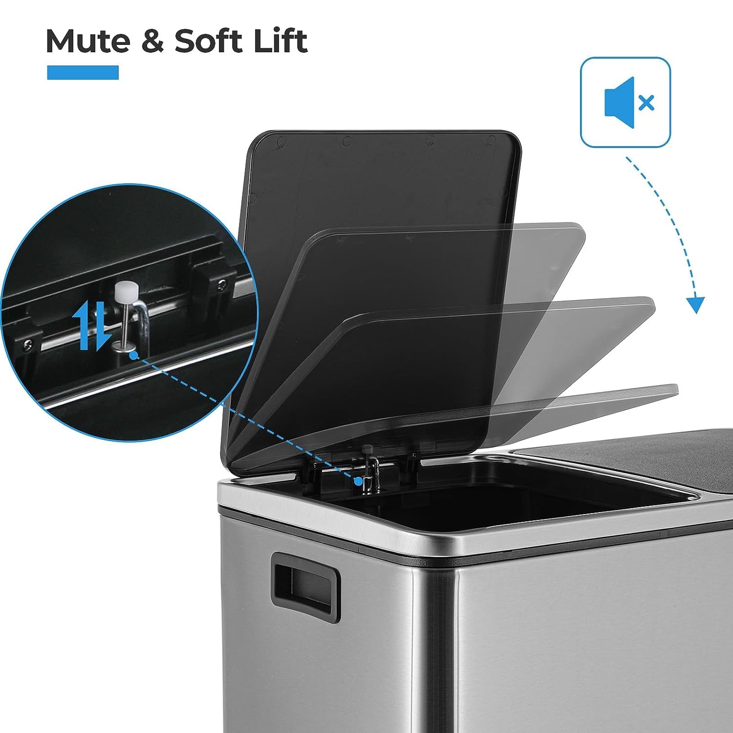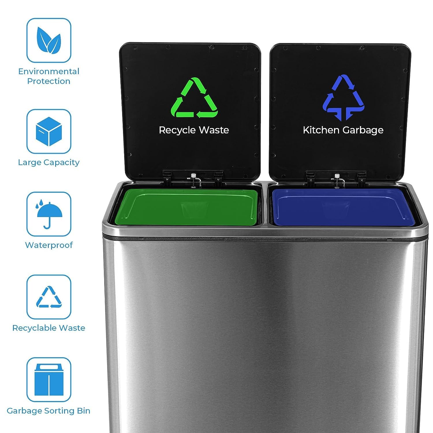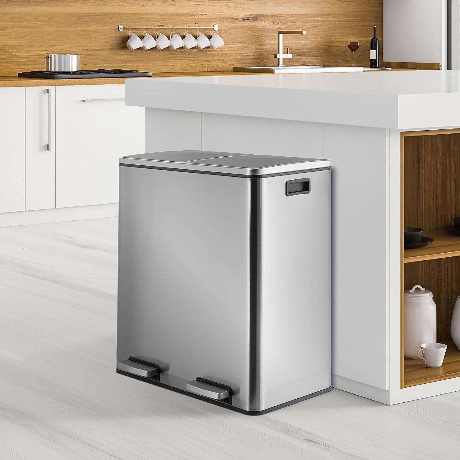 - 【60L Gesamtkapazität mit Trennsystem】 Der Mülleimer verfügt über zwei Fächer, jedes Fach hat ein grosses Fassungsvermögen von 30L, das zur Aufbewahrung von trockenem Müll, Küchenabfällen, wiederverwertbarem Müll und gefährlichem Müll