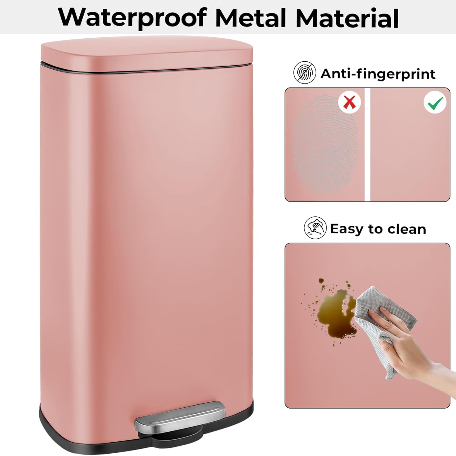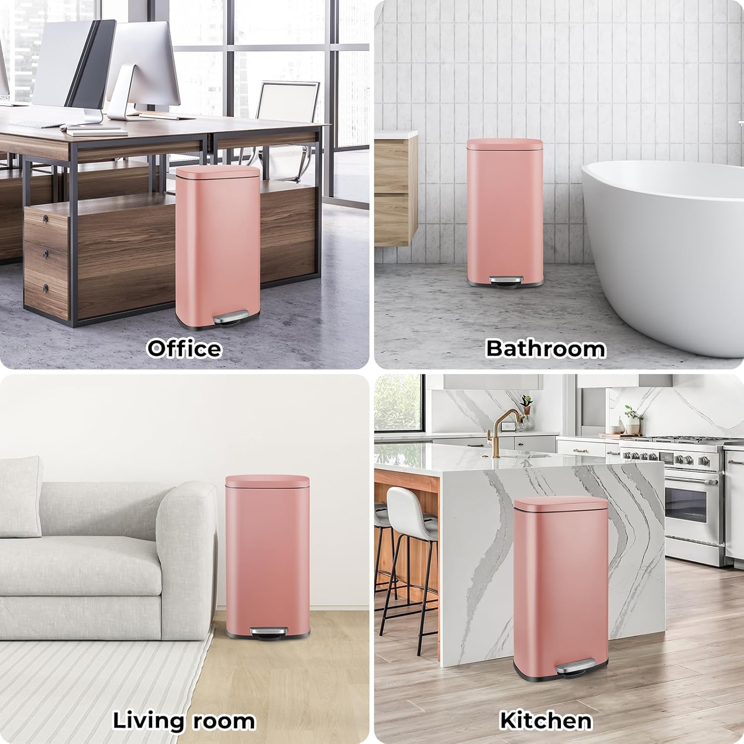 - 【Elegantes Aussehen】 Das stilvolle rechteckige Metalldesign des Mülleimers lässt sich gut in Ihre Küche, Ihr Schlafzimmer, Ihr Büro, Ihr Badezimmer usw. mit verschiedenen modernen Dekorationsstilen integrieren.