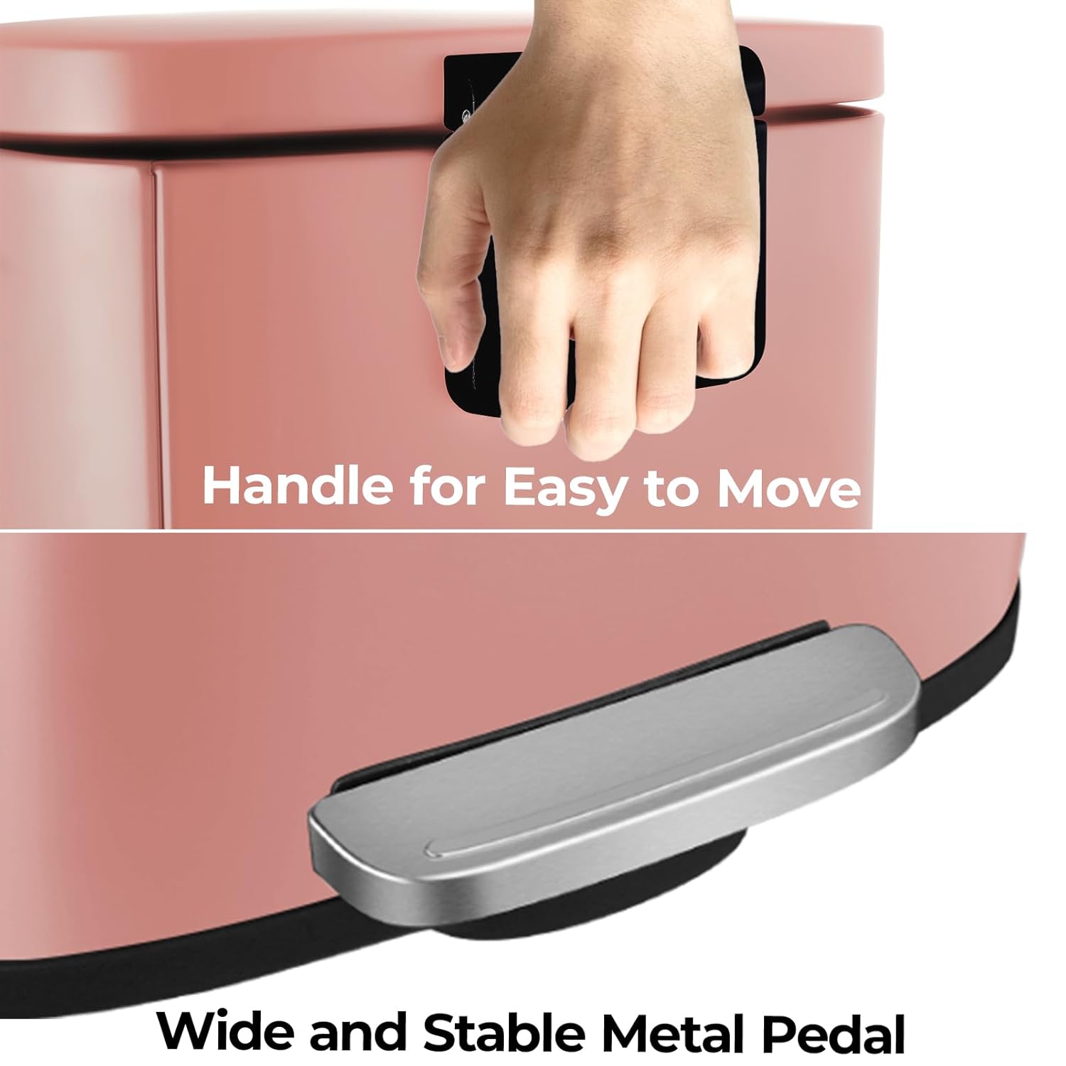 - 【Geräuschlos】 Mit einer eingebauten Puffervorrichtung kann der Deckel schnell geöffnet und dann langsam geschlossen werden, ohne störende Geräusche zu verursachen. Durch Treten auf das breite Metallpedal können Sie den Deckel leicht öffnen, was