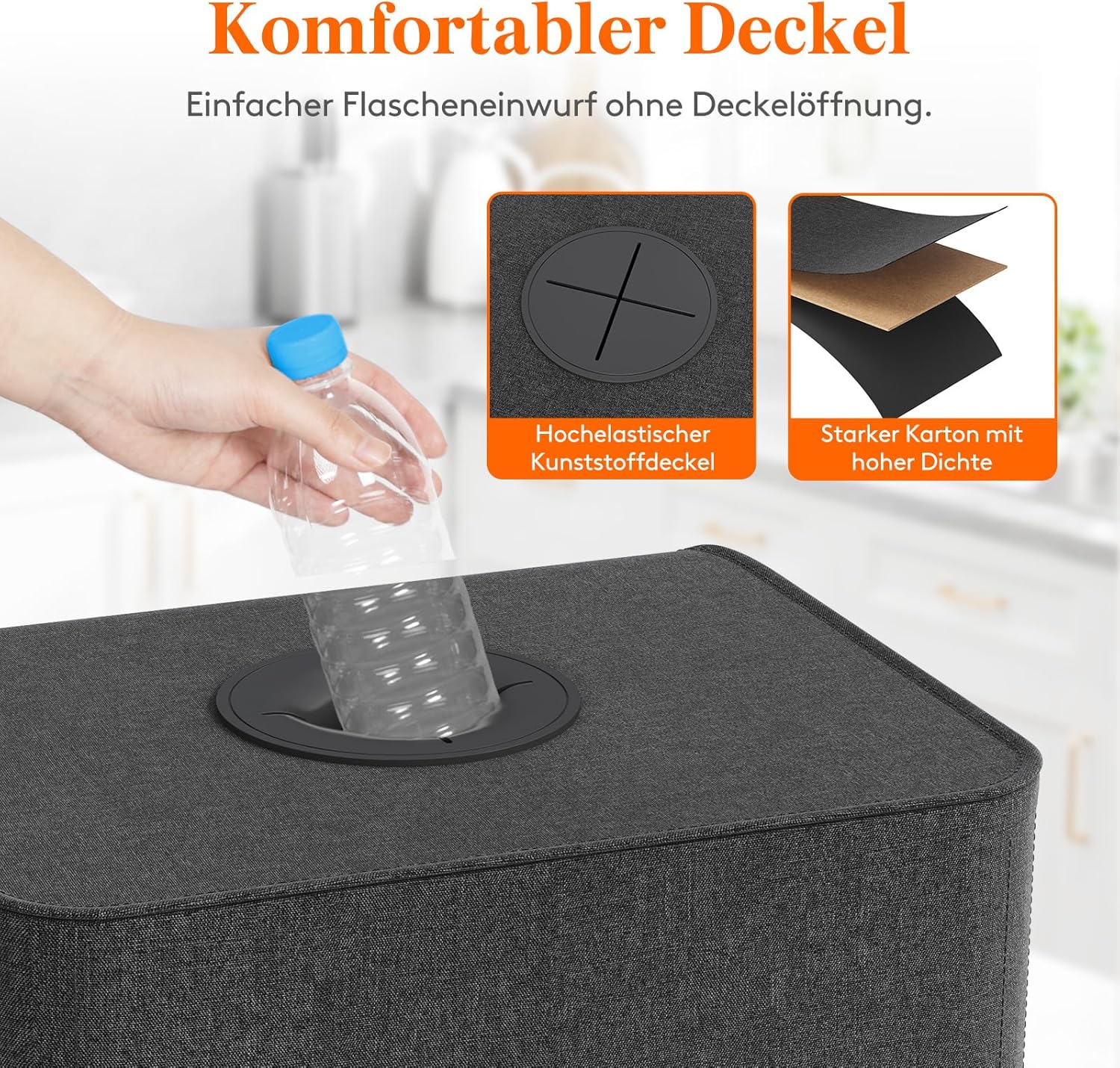 - Praktischer Deckel: Diese Pfandflaschen Aufbewahrung verfügt über eine hochelastische Kunststoffabdeckung am Deckel, die ein einfaches Einwerfen von Flaschen ermöglicht, ohne den Deckel zu öffnen. Diese breite Öffnung nimmt Flaschen jeder Grösse