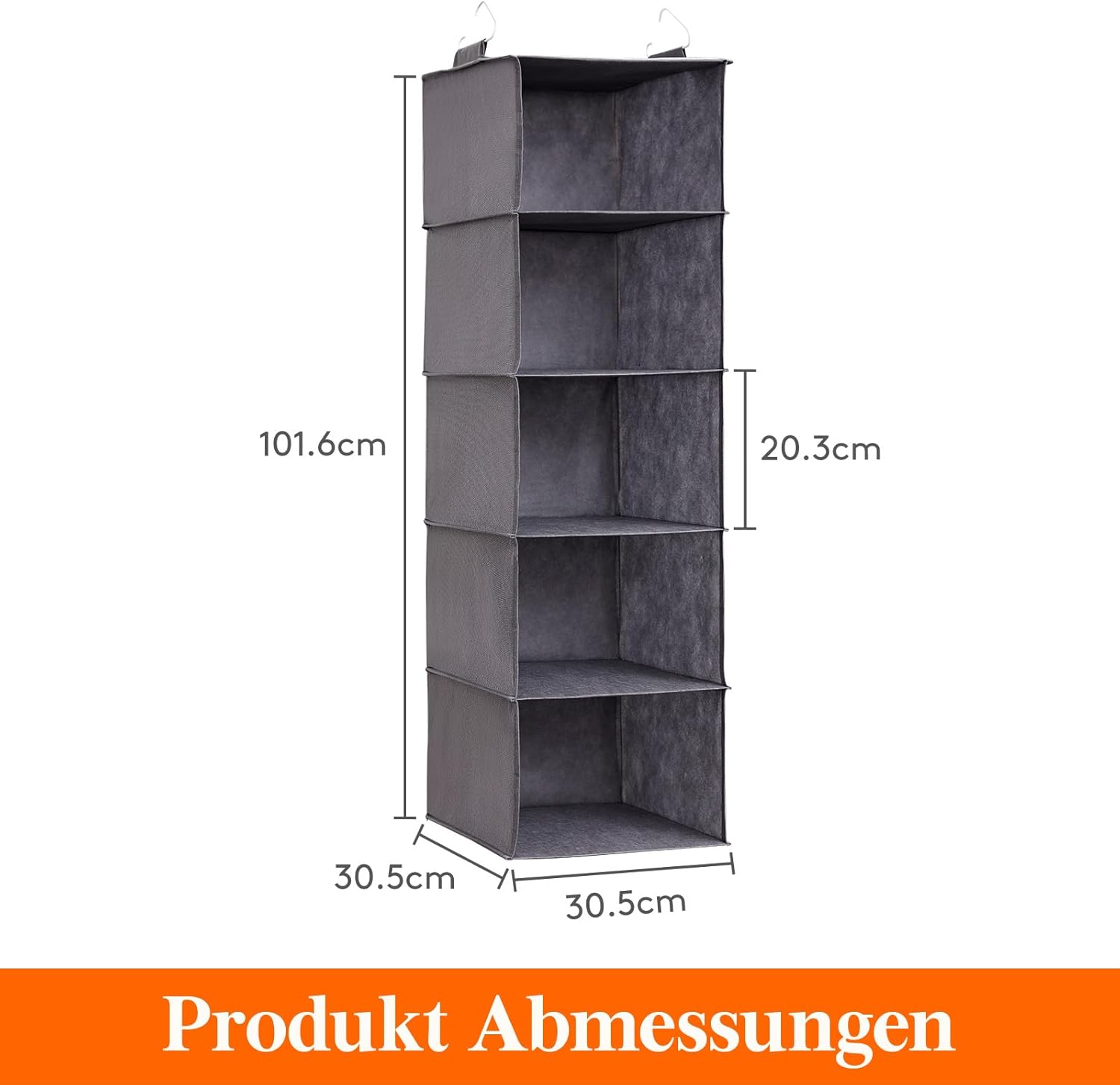 - Langlebig und stabil: Der Kleiderschrank Organizer wird mit 2 stabilen Metallhaken befestigt, die an jeder Kleiderstange aufgehängt werden können und äusserst belastbar sind. Jede Ablagefläche des Hängeregal ist gross genug, um sperrige Pullover,