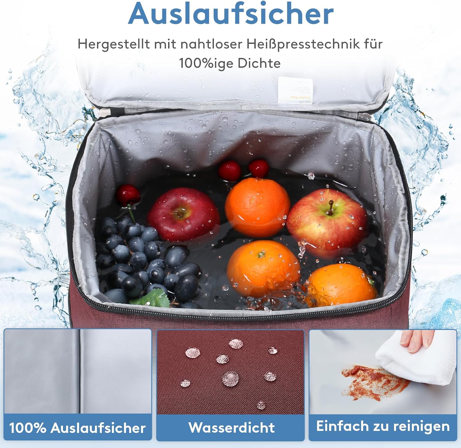 • Abmessungen: Die Kühltasche kann bis zu 20 Liter (30 Dosen) fassen; die Gesamtmasse der Lunchbag sind 35 × 23 × 25 cm