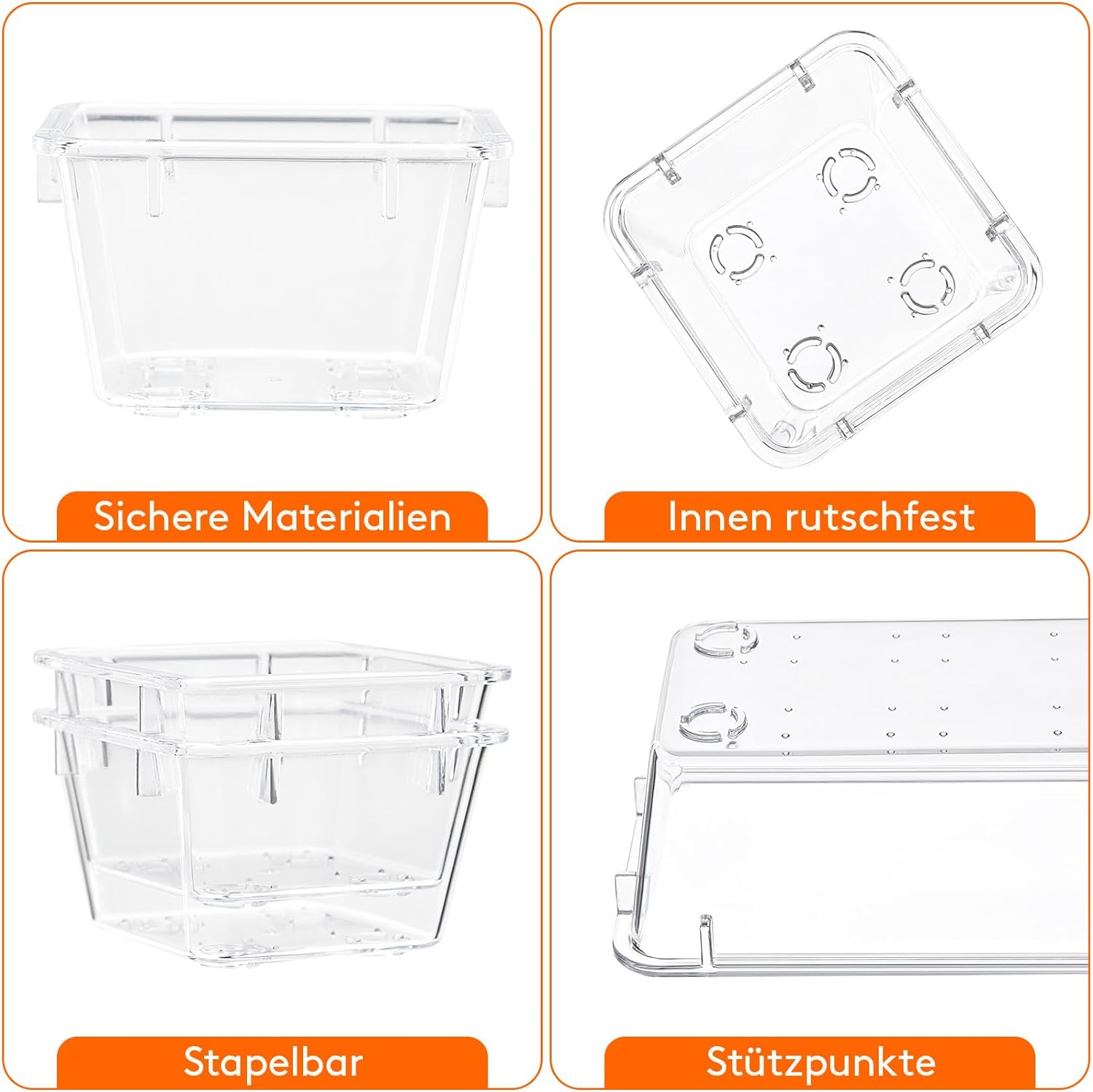 - Leicht zu reinigen: Durch einfaches Abwischen oder schnelles Abspülen mit Wasser können Sie Staub und Schmutz von den Schubladen-Organizern entfernen und sie immer sauber halten.