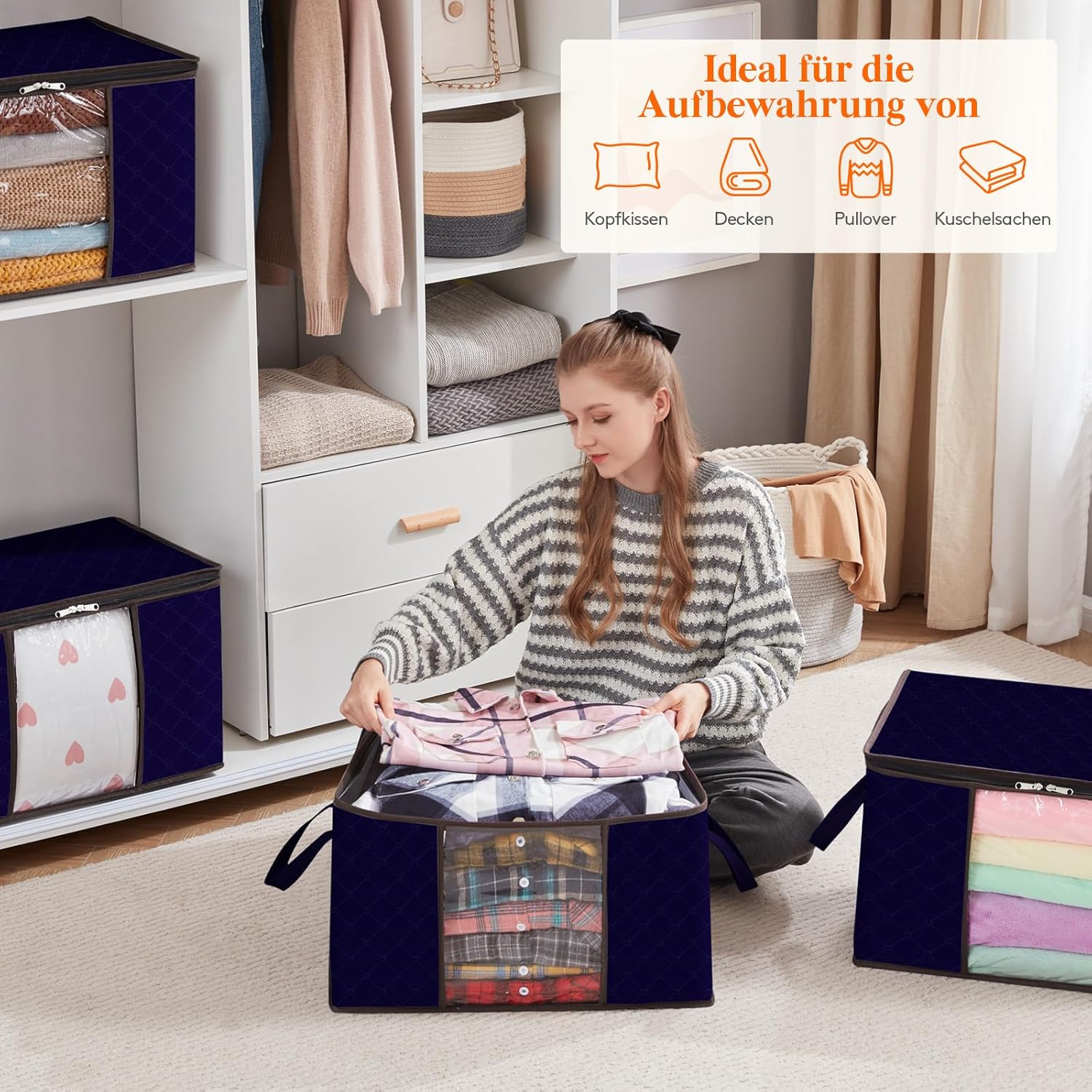 Lifewit 4 Stück Gross Aufbewahrungsbox mit Deckel, Aufbewahrungstasche für Bettdecken Kleidung Aufbe