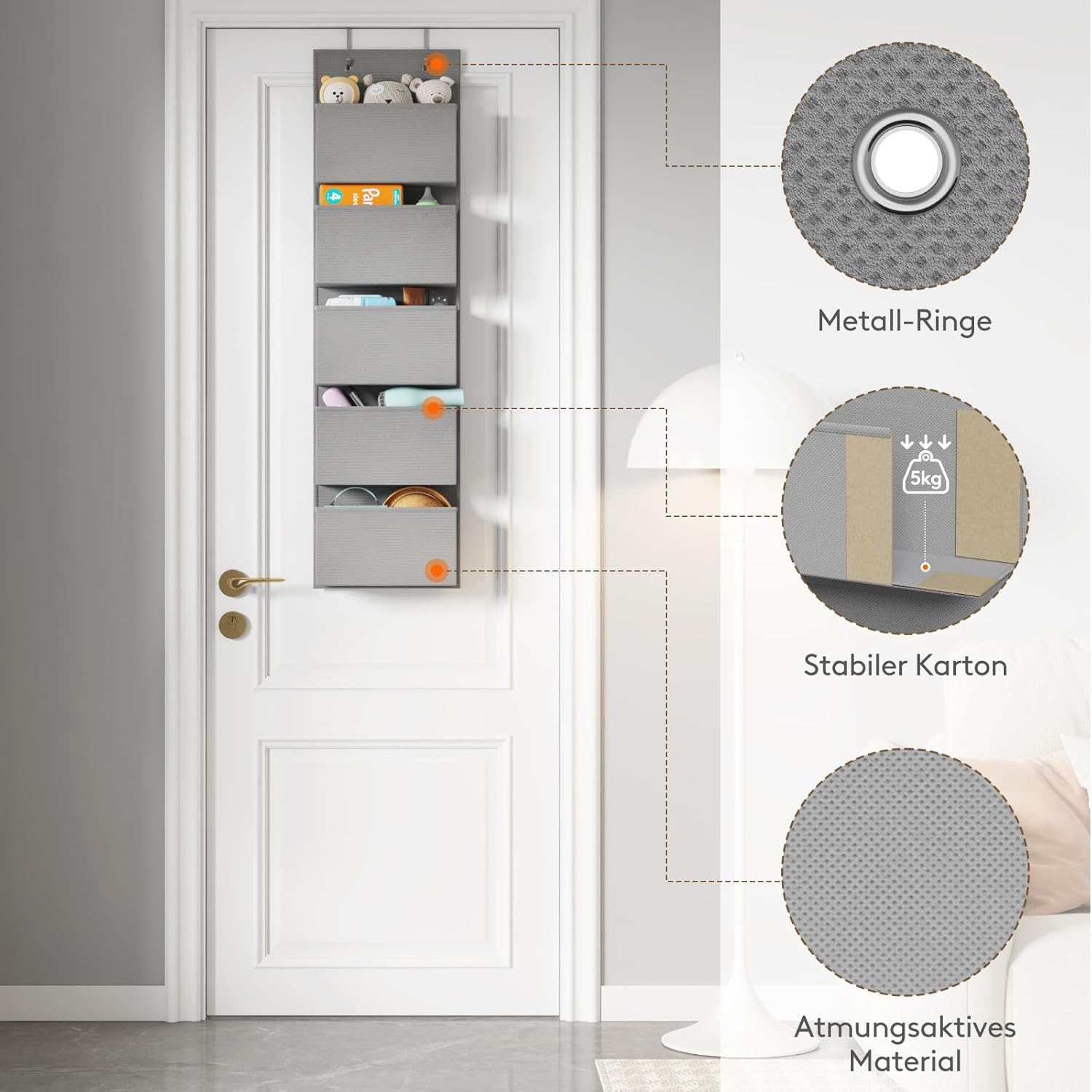 - Ideal für die Verwendung hinter der Tür: Dieser Hängeorganizer misst 13,2" (33,5cm) * 4,7" (12cm) * 48,2" (122,5cm) und bietet reichlich Stauraum mit insgesamt 5 Fächern, die jeweils 12,6" (32cm) * 3,9" (10cm) * 6,7" (17cm) messen. Das Hängeregal