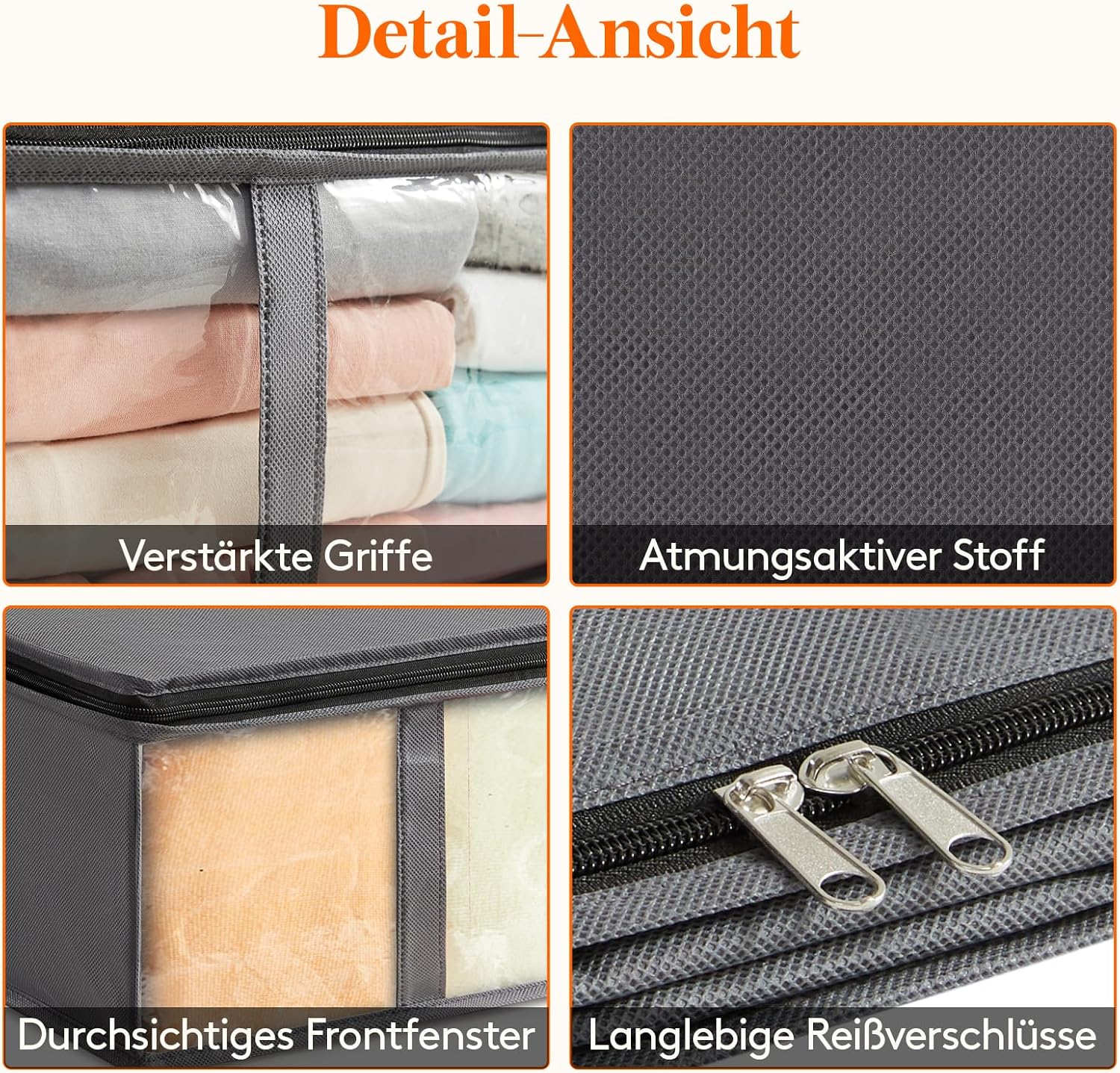 - Durchsichtiges Fenster: Das durchsichtige Vorderfenster dieser Unterbett-Aufbewahrungsbehälter bietet eine hervorragende Sichtbarkeit, sodass Sie sofort sehen können, was sich darin befindet, ohne den Reissverschluss öffnen zu müssen. Bei
