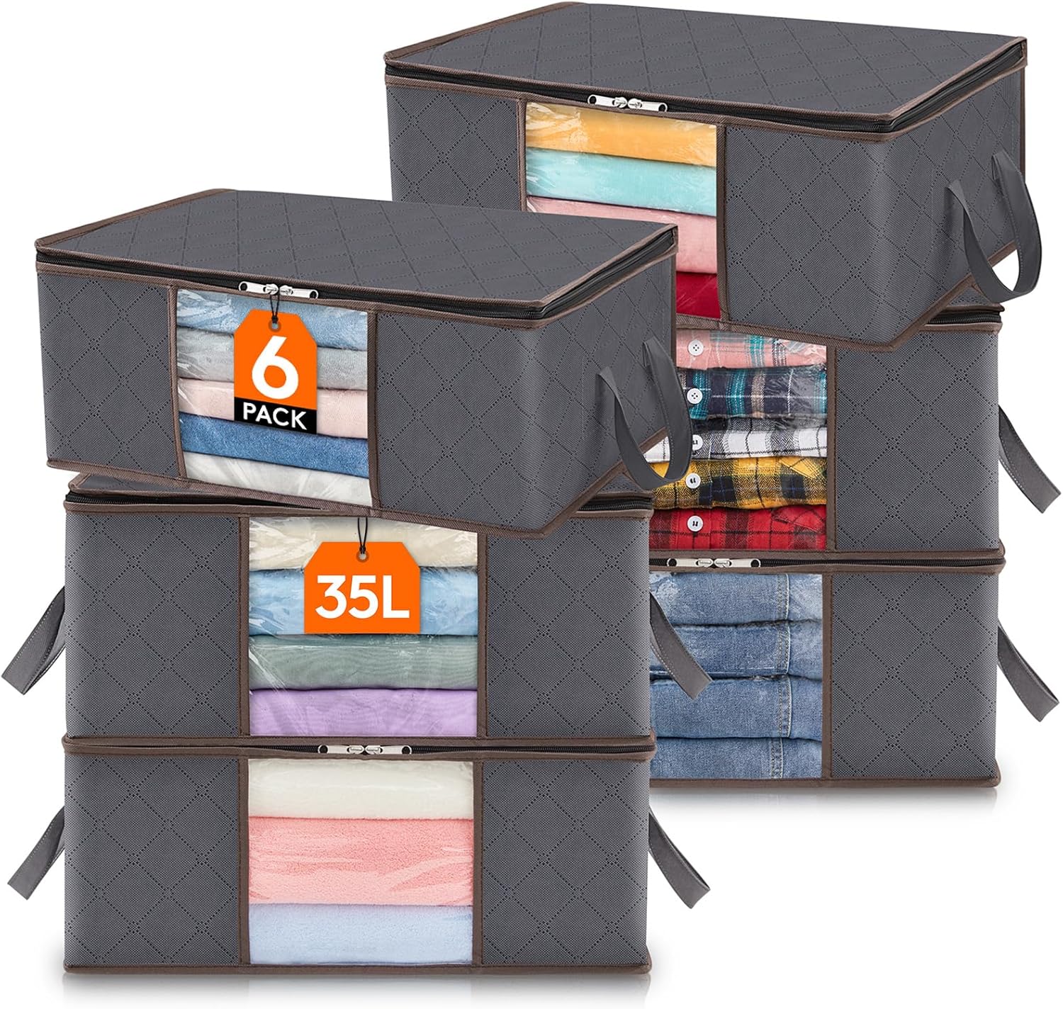 Lifewit 6 Stück 35L Aufbewahrungstasche, Unterbett Aufbewahrungsbox Kleideraufbewahrung, Faltbare Um