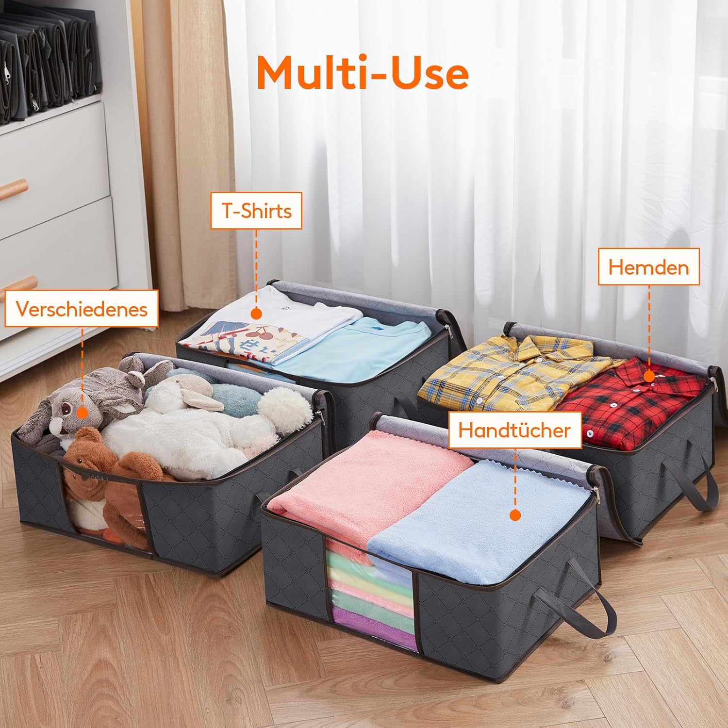 • Platz sparen : Jeder Aufbewahrungstasche misst 48cm x 36cm x 20cm und hat ein Fassungsvermögen von 35L. Mit dem leicht faltbaren Design können Sie Ihre Kleidung ordentlich aufbewahren und gleichzeitig Platz für weitere Aufbewahrung sparen.