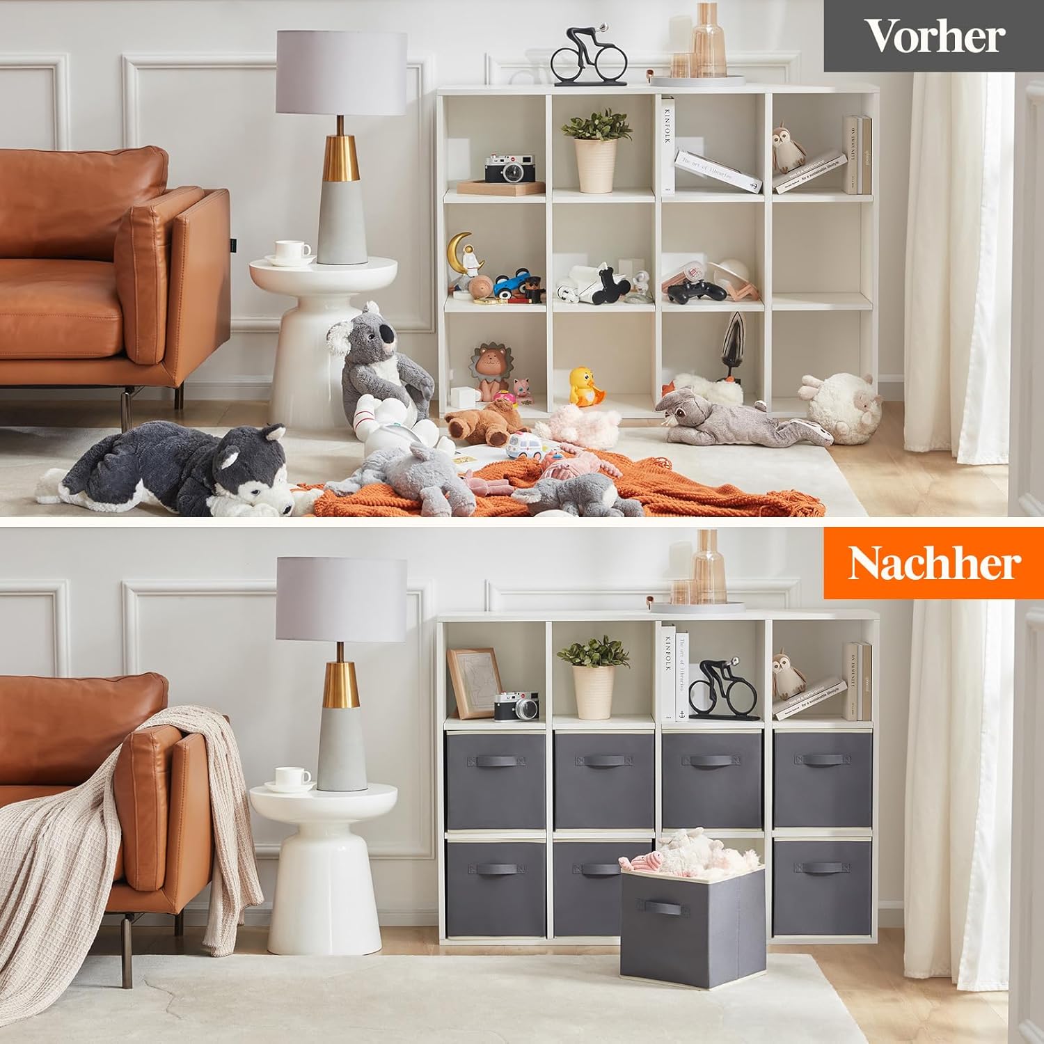 - Mehrzweck: Die in 2 Grössen erhältlichen Aufbewahrungsboxen können im Wohn- oder Schlafzimmer aufgestellt werden, um Kleinigkeiten, Spielzeugs, Zeitschriften und vieles mehr zu verstauen. Das neutrale Design passt perfekt zu jeder Einrichtung und ist