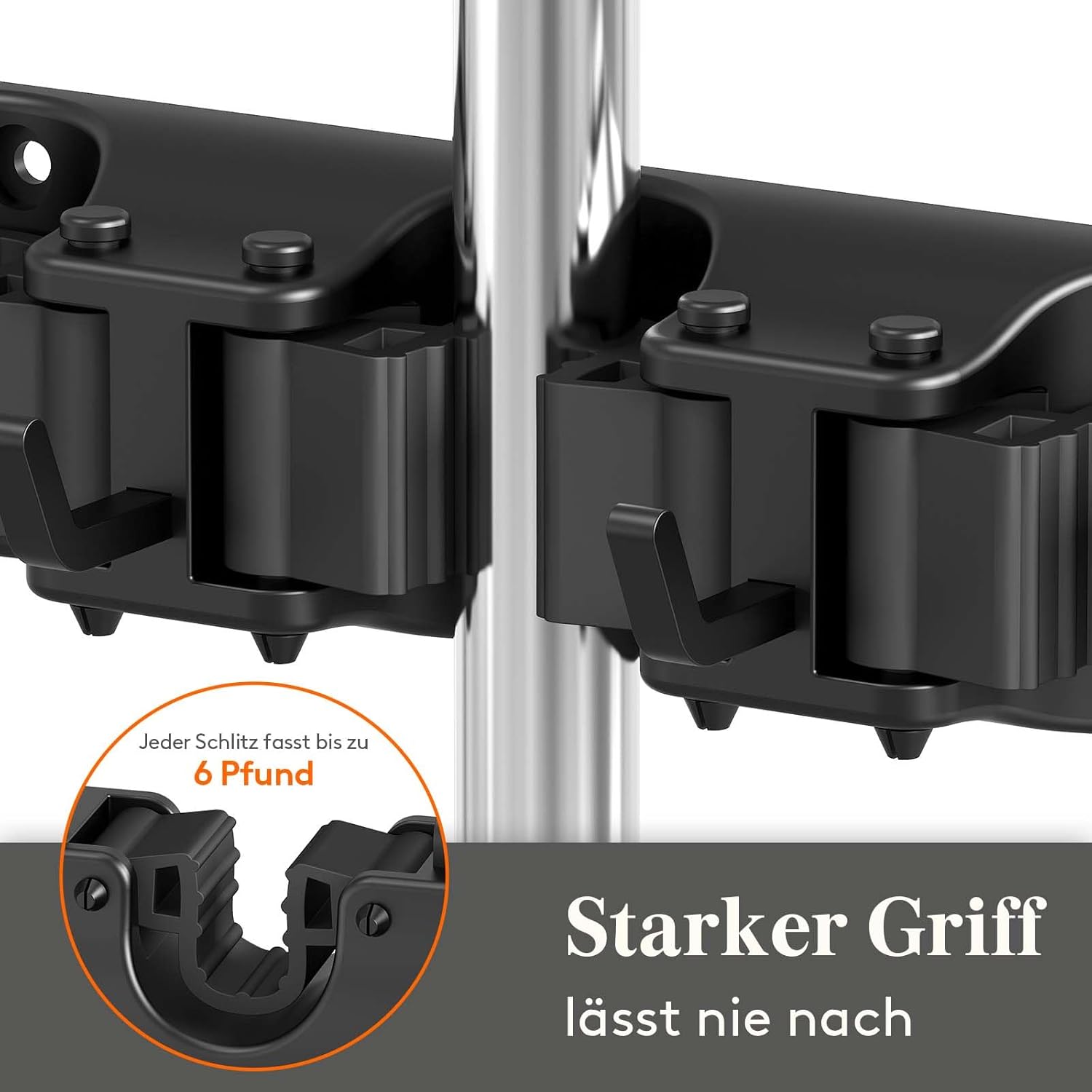 • Stärkster Halt: Die Besenhalterung besteht aus hochwertigem PP-Kunststoff und TPE-Silikonmaterial, das über ein stabiles Haltesystem verfügt, mit dem Ihre Reinigungs- und Gartengeräte sicher festgehalten werden. Jeder Schlitz hält bis zu 3 kg und