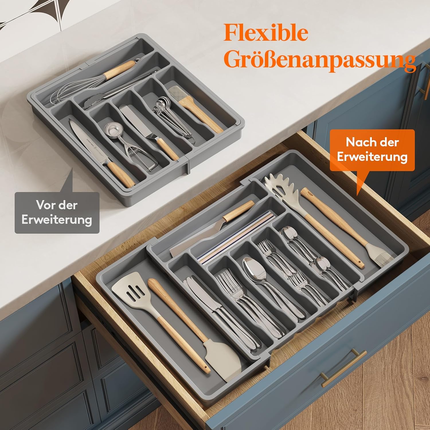 Lifewit Besteckkasten für Schubladen, erweiterbarer Besteckeinsatz für Küchenschubladen, verstellbar