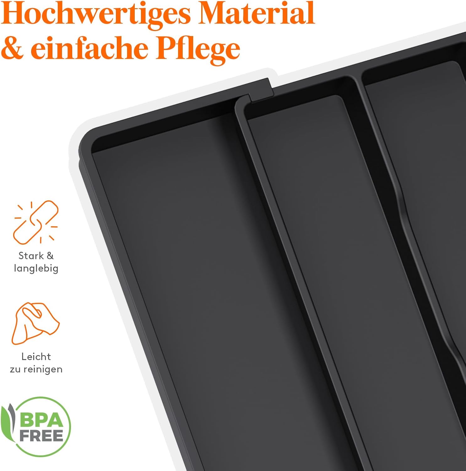 • Sichere Nutzung: Hergestellt aus BPA-freiem Kunststoff, garantiert dieser Besteck Organizer die Sicherheit all Ihrer Utensilien, Silberwaren und Bestecke. Auch die Reinigung ist ein Kinderspiel - spülen Sie den Besteck Organizer einfach mit Wasser aus,
