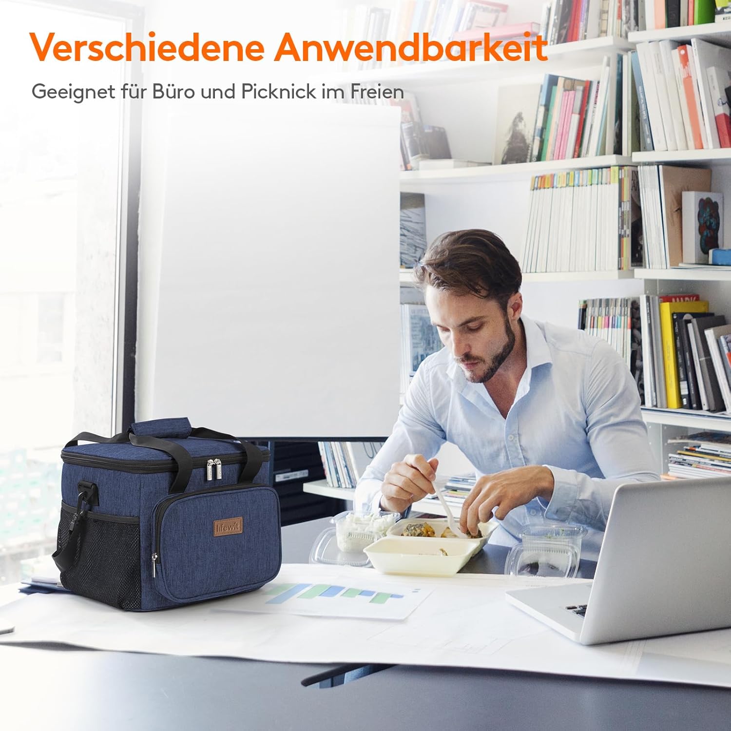 - Praktisch & tragbar: Der Deckel dieser Kühltasche lässt sich dank der starken Zwei-Wege-Reissverschlüsse weit öffnen, d.h. Sie können Ihre Lunchbox in die Tasche stellen und vertikal rausnehmen. Verhindern Sie so, dass Flüssigkeiten auslaufen und