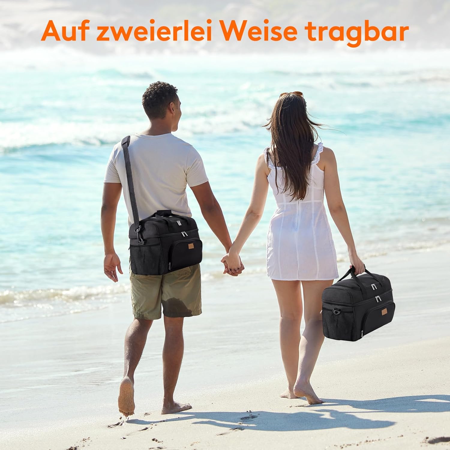 • Grosses Fassungsvermögen: Unsere Kühlbox fasst bis zu 23 Liter an Volumen. Sie können 32 Dosen (330ml) Ihrer Lieblingsgetränke plus Eis mitnehmen. Die Gesamtmasse betragen ca. 38 cm (14,9") x 22 cm (8,6") x 28cm (11'').
