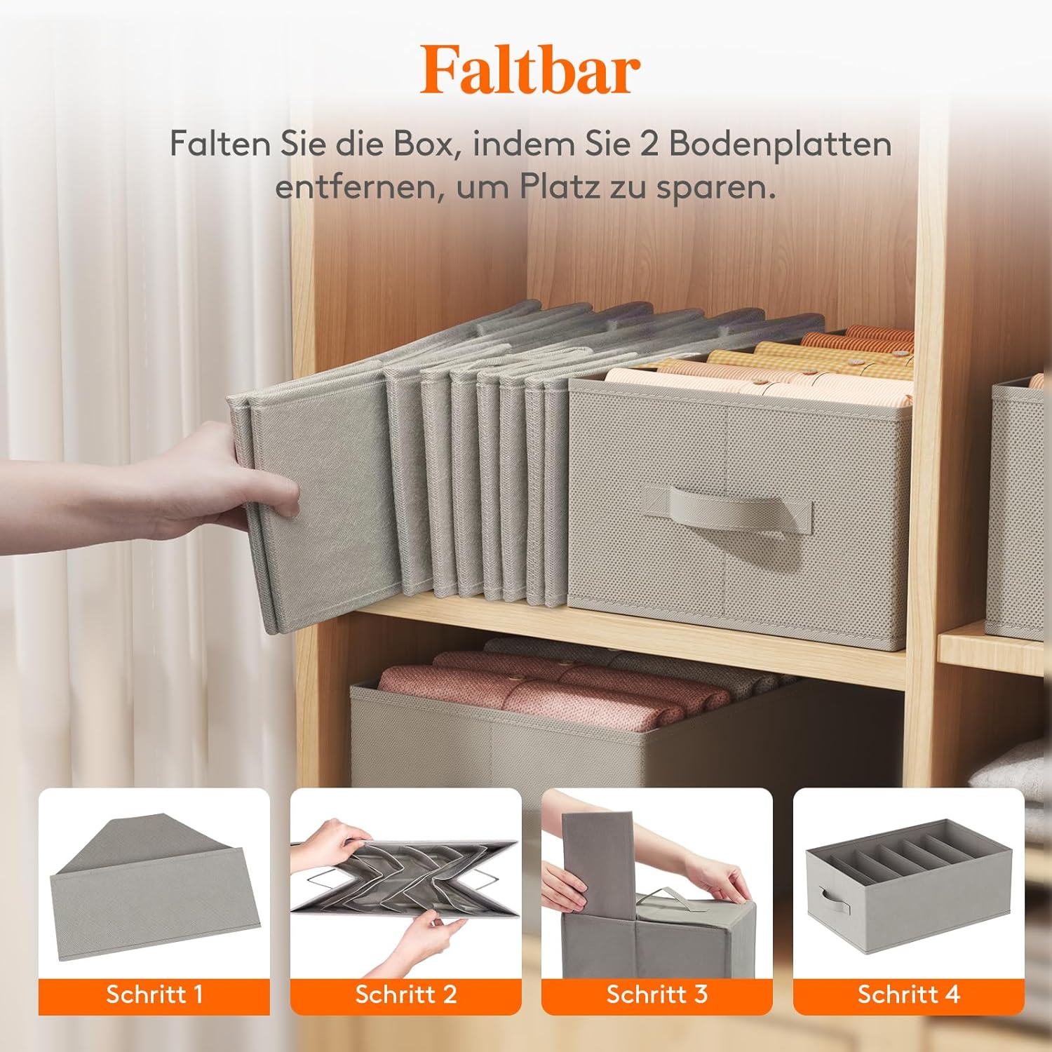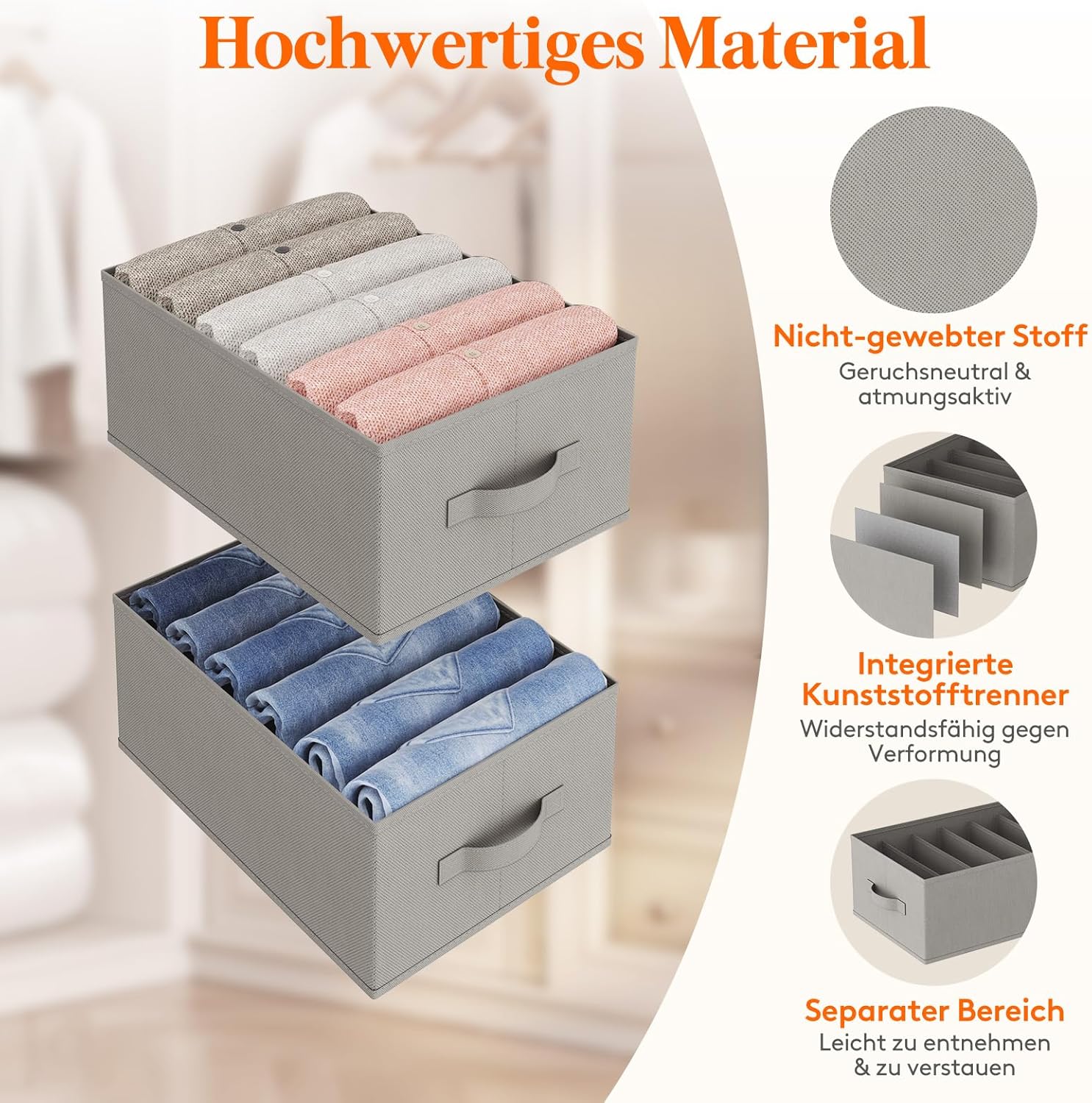 - Grosse Kapazität: Diese Kleiderschrank Organizer bieten reichlich Stauraum mit den Massen 16,5"x10,6"x6,7"(42x27x17cm) und 6 Fächern. Jedes Fach hat eine Breite von 7 cm (2,8"), was eine nahtlose Sortierung von Hosen, Jeans, T-Shirts, Pullovern,