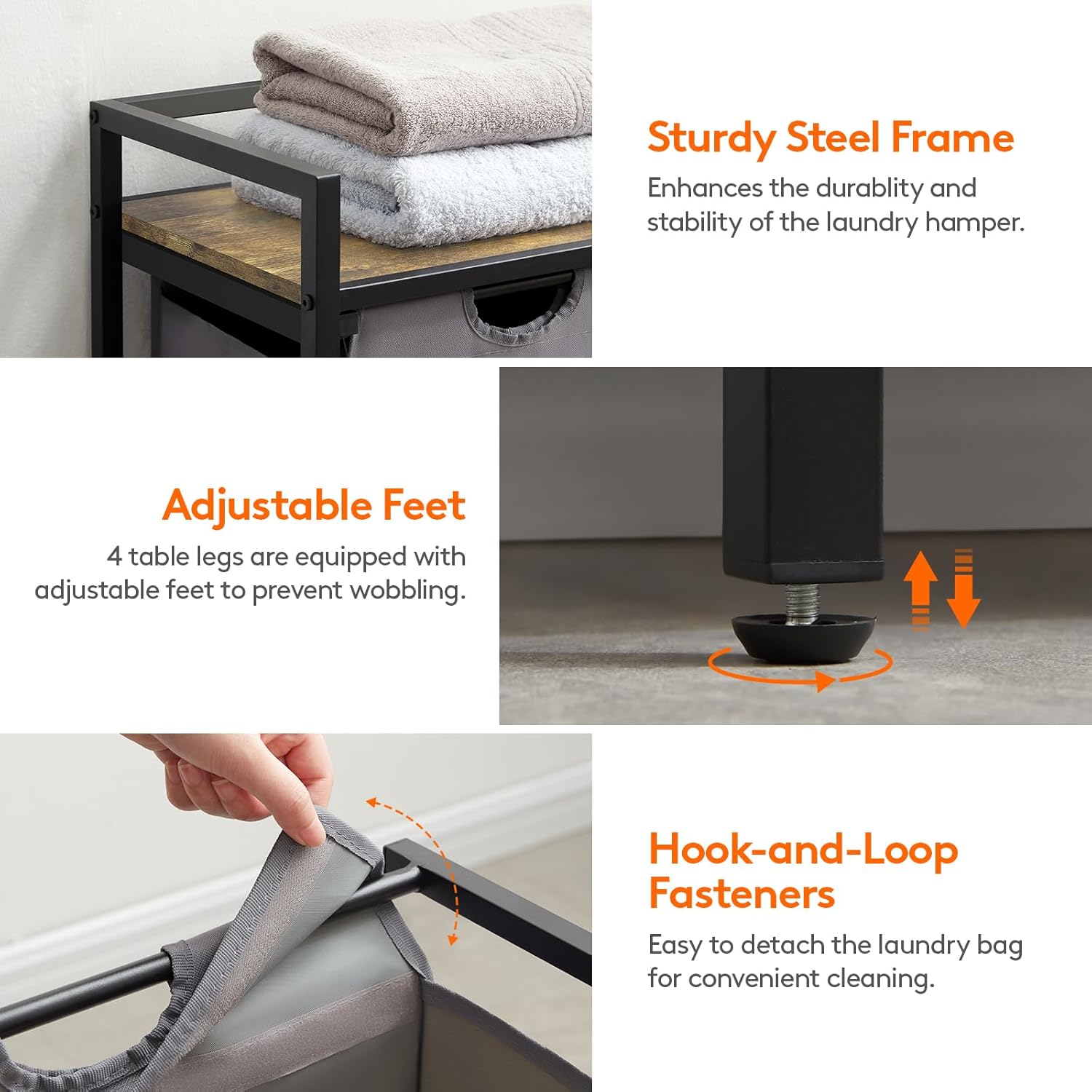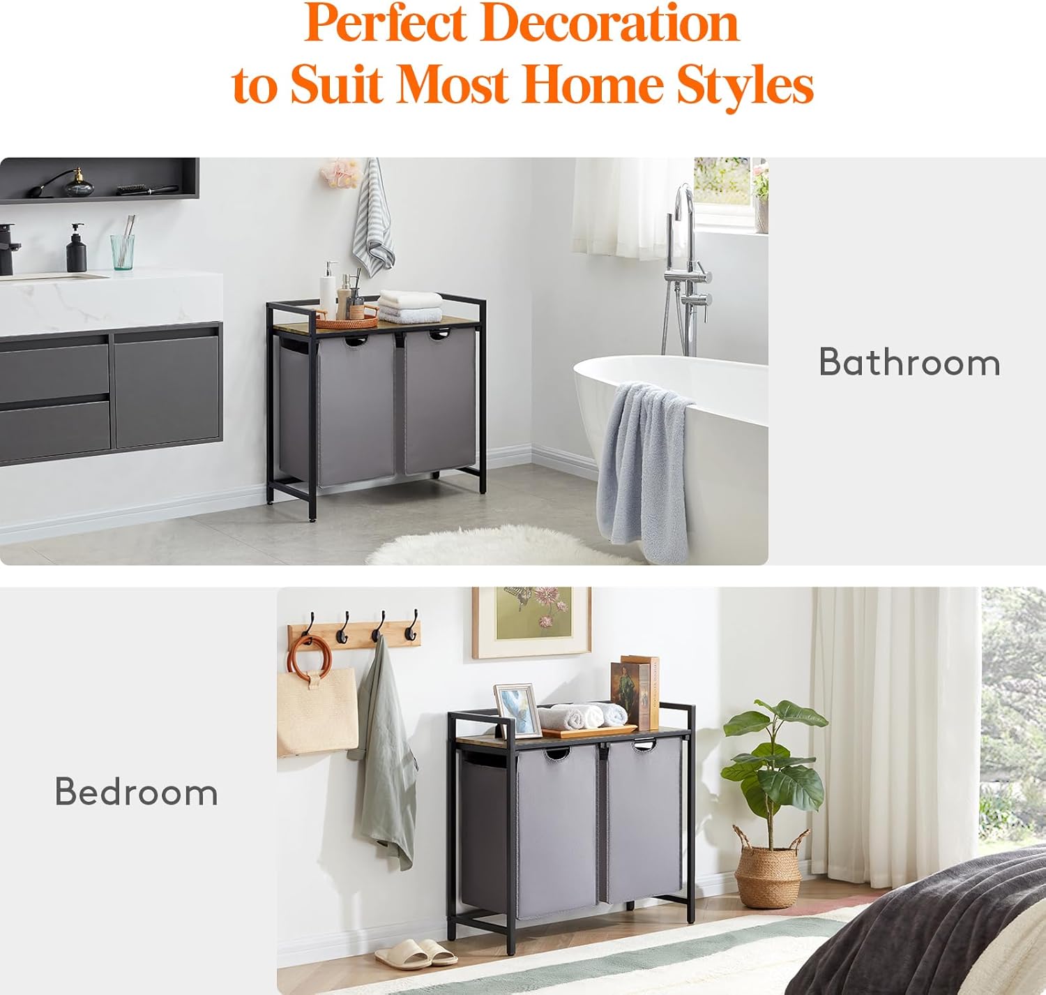 Lifewit Wäschekorb 2 Fächer, 95L/47,5x2L Wäschesammler mit Ablage, Laundry Baskets mit herausziehbar