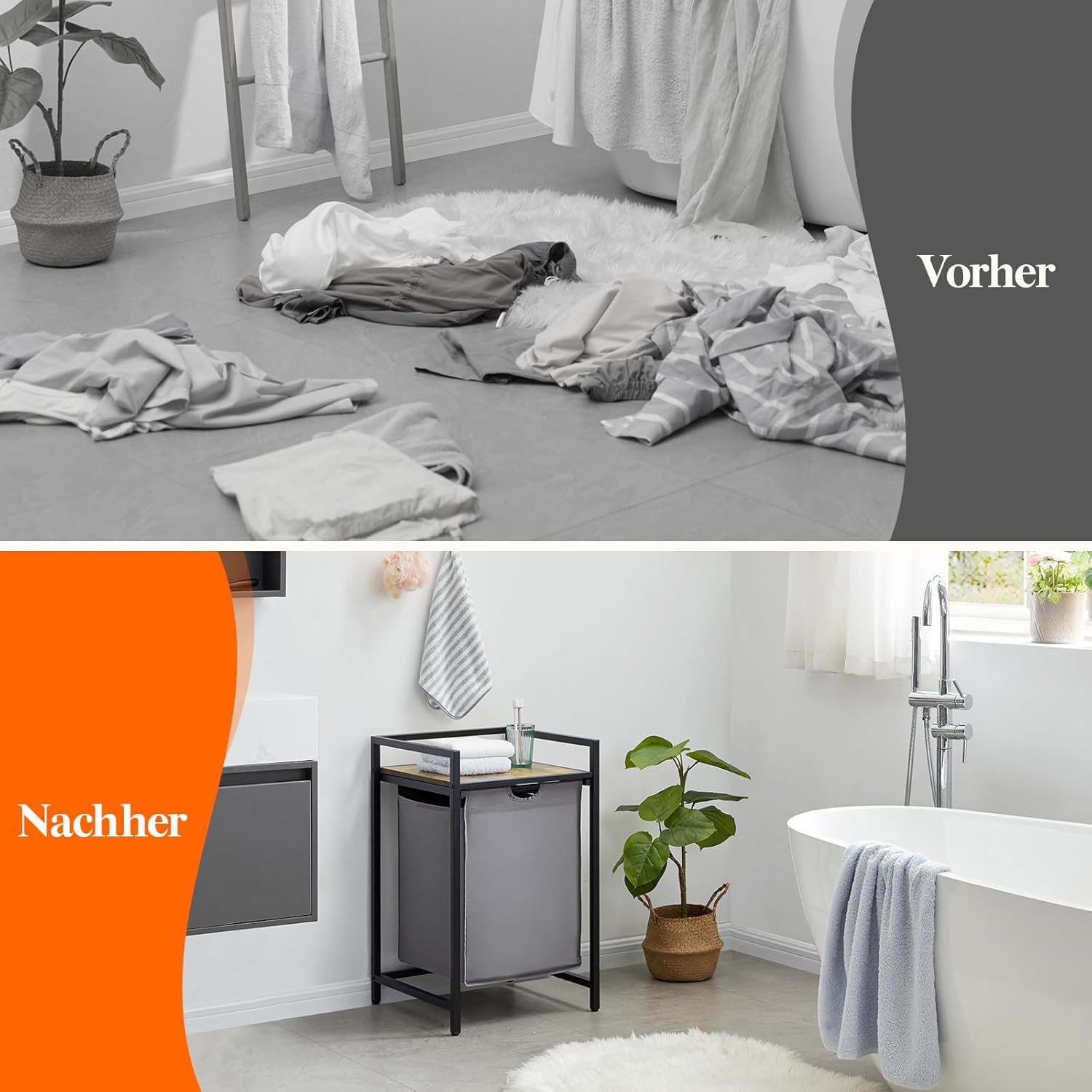 • Einfach zu montieren: Dieser Wäschekorb mit Regal passt gut in die Waschküche, das Badezimmer oder das Schlafzimmer und hilft, Chaos zu beseitigen.