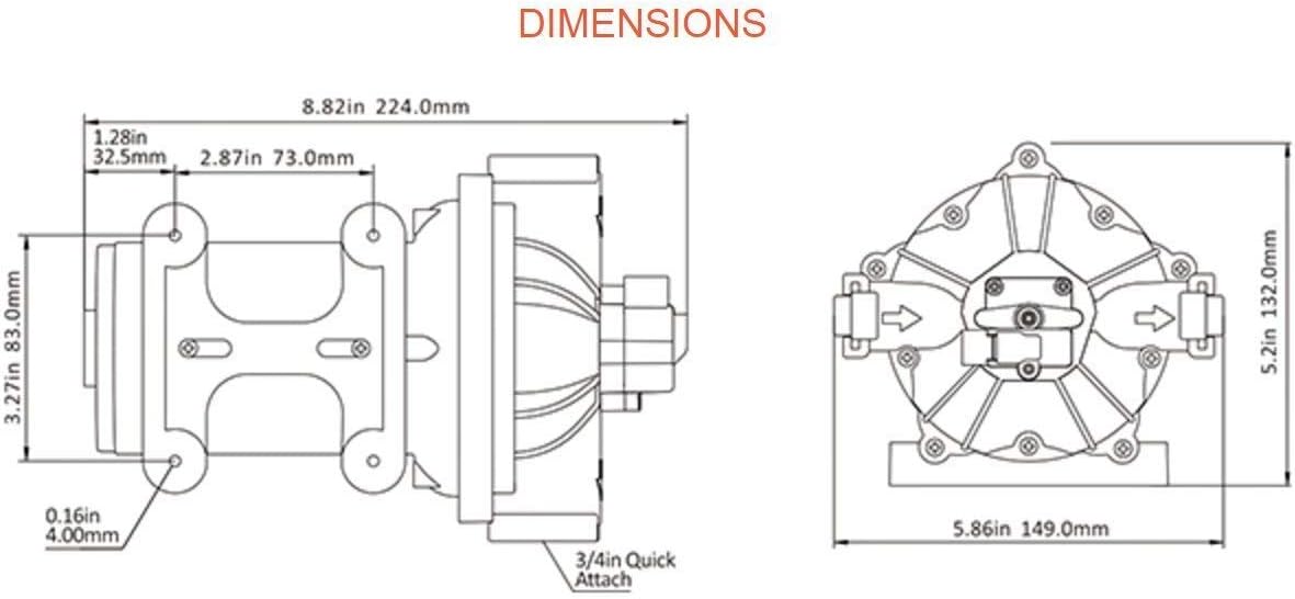 - 5,5 Gallonen pro Minute, 17,0 A Max. Zugkraft. Hinweis: Es ist normal, dass sich in einer neuen Pumpe Wasser befindet, da wir in unserem Werk für jede Pumpe eine Qualitätsprüfung durchgeführt haben.