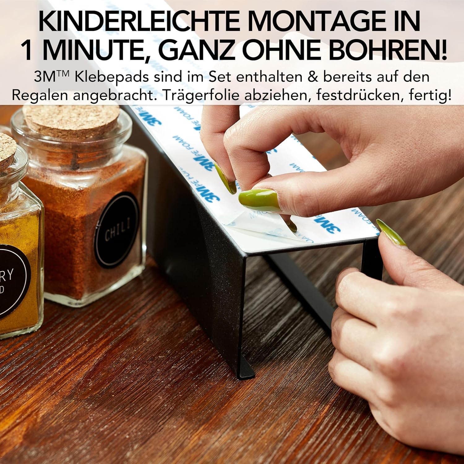 - 👋 EINFACHE REINIGUNG - Das beschichtete Metall ist rost- und korrosionsbeständig. Ein feuchtes Tuch und etwas Spülmittel reichen aus, um einen Schmutz- oder Fettfilm oder auch Gewürzreste vom Gewürzregal zu entfernen!
