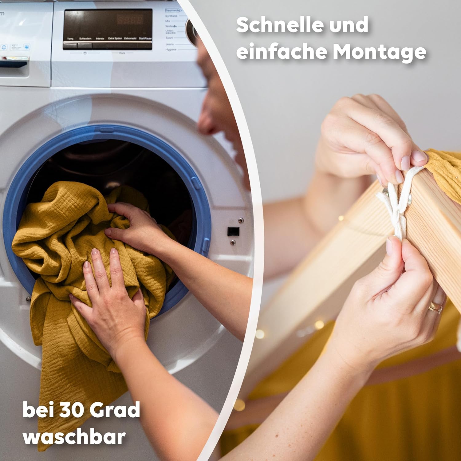 - ๐๐๐๐ฅ๐๐ ๐๐ฅ๐๐ข๐๐ก๐ญ & ๐ฐ๐๐ฌ๐๐ก๐๐๐ซ: Wasche deinen Baldachin bereits vor der Montage bei 30ยฐC im Schonprogramm. Danach Aufhรคngen und einfach trocknen lassen. Kein Bรผgeln notwendig.