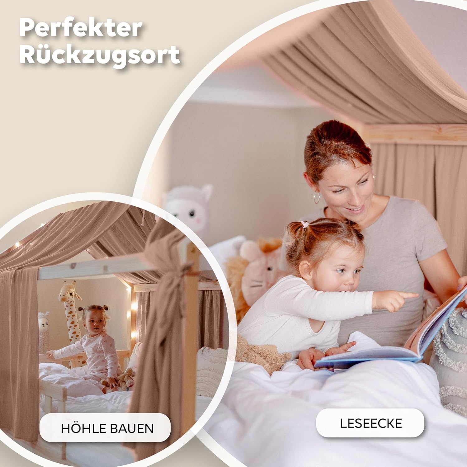 - ✨ 100% MUSSELIN BAUMWOLLE - Unser handgenähter Hausbett Himmel besteht aus weichem, atmungsaktivem Musselin Stoff und schafft eine kuschelige Atmosphäre für Kinder. Perfekt als himmlische Hausbett Deko.