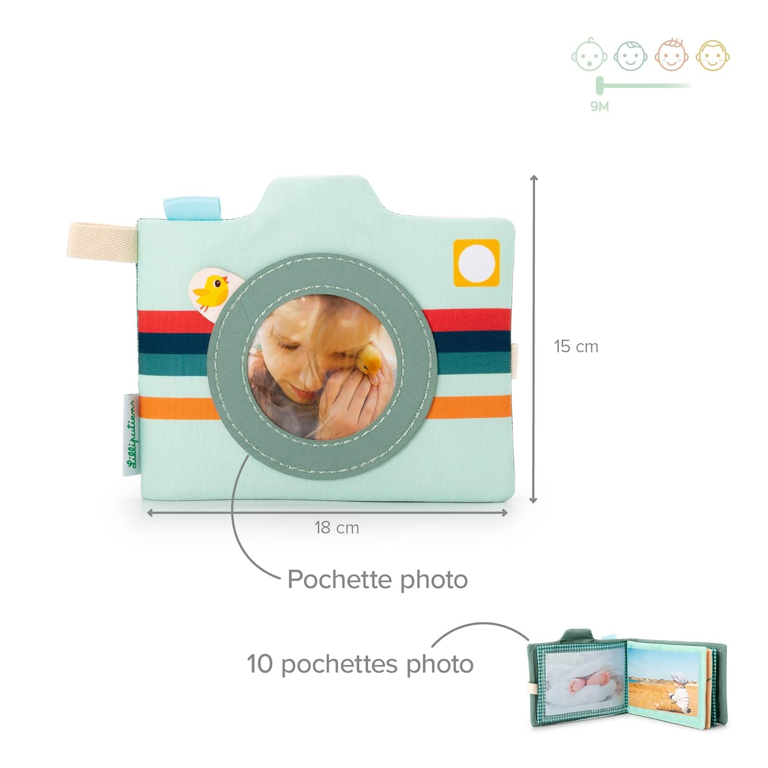 PRODUKTBESCHREIBUNGEN Suchen Sie sich für das schöne Baby-Fotoalbum Alice von Lilliputiens. 10 laminierte Seiten für die besten Erinnerungen an Ihr Baby. Masse: 15 x 18 x 2,5 cm. Material: Polyester und Baumwollgurt. Pflege: Oberflächenwäsche. Kollektion: Joe
