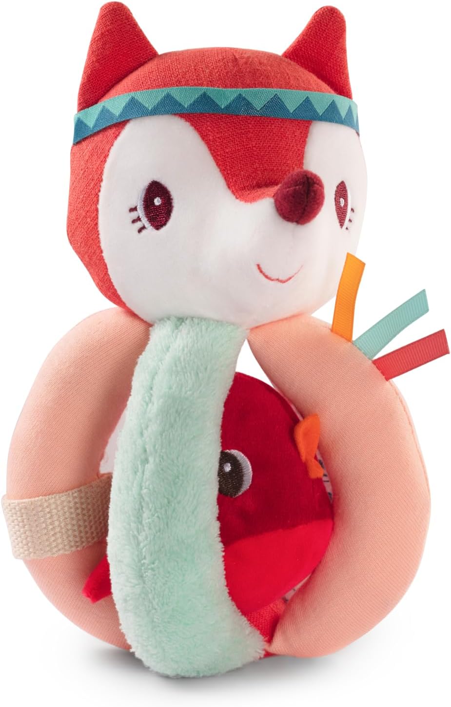 - Alice versteckt sich, um das Baby zu überraschen: Die Füchsin Alice versteckt sich zwischen den Griffen und bietet ein interaktives und lustiges Spiel, das die Neugierde weckt und die Sinne des Babys schon in den ersten Monaten anregt.
