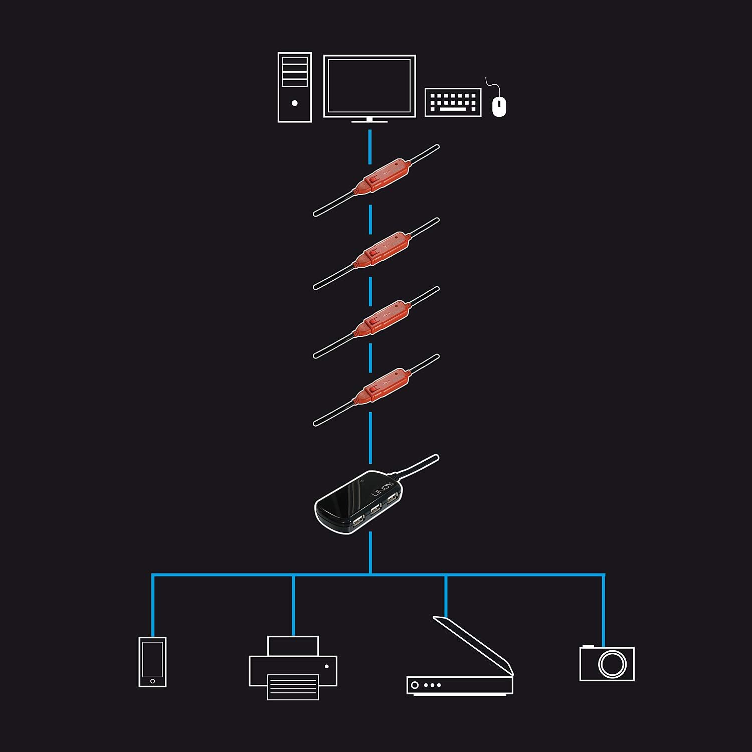 - LINDY USB-Kabel USB 2.0 USB-A Stecker, USB-A Buchse 12.00m Schwarz