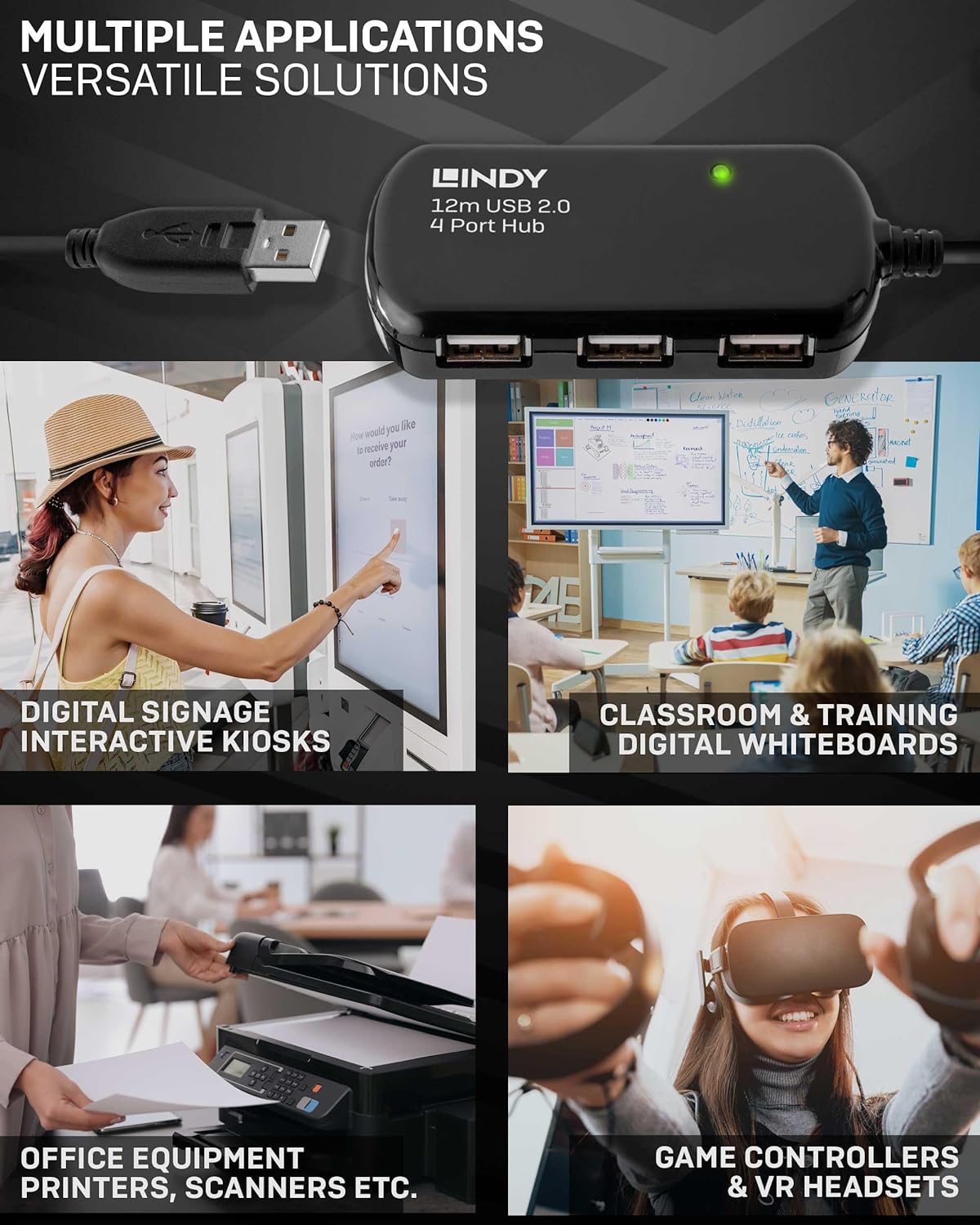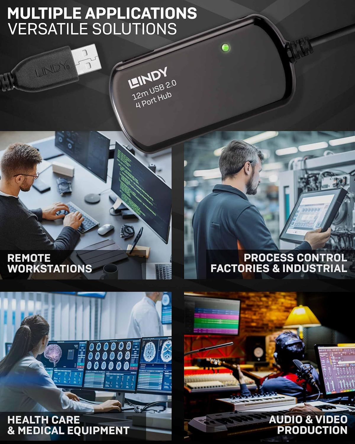 LINDY USB 2.0 Aktiv-Verlängerungs-Hub Pro - Kabel, 42783, Schwarz