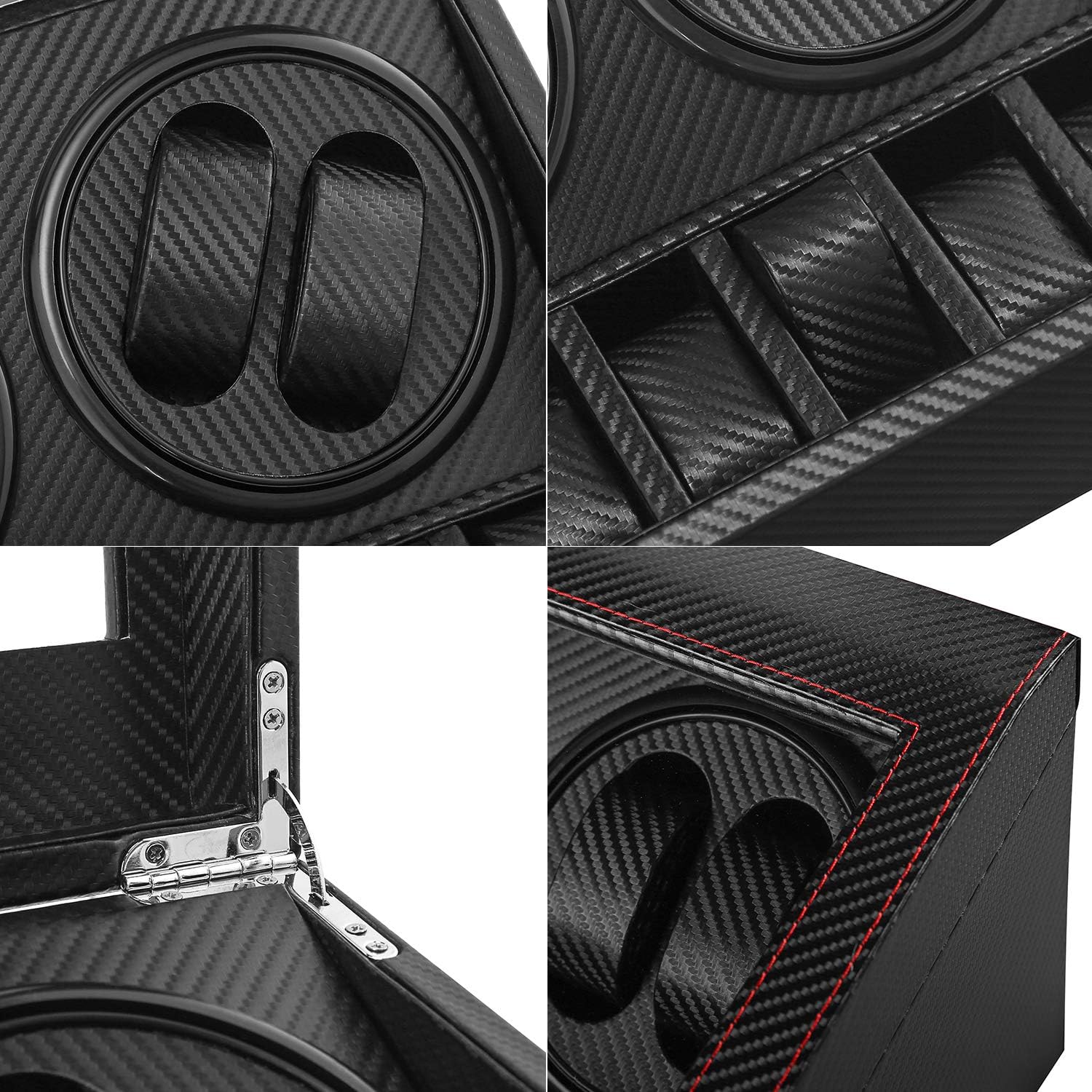 - 【KLASSISCH PRAKTISCH 】Einfach, elegant und grosse Kapazität.Es gibt 4 Automatikuhr aufzuziehende Plätze und 6 kleine Abteile in dem Uhrenkasten, Ihre Uhren und Schmuck können gut aufbewahren werden