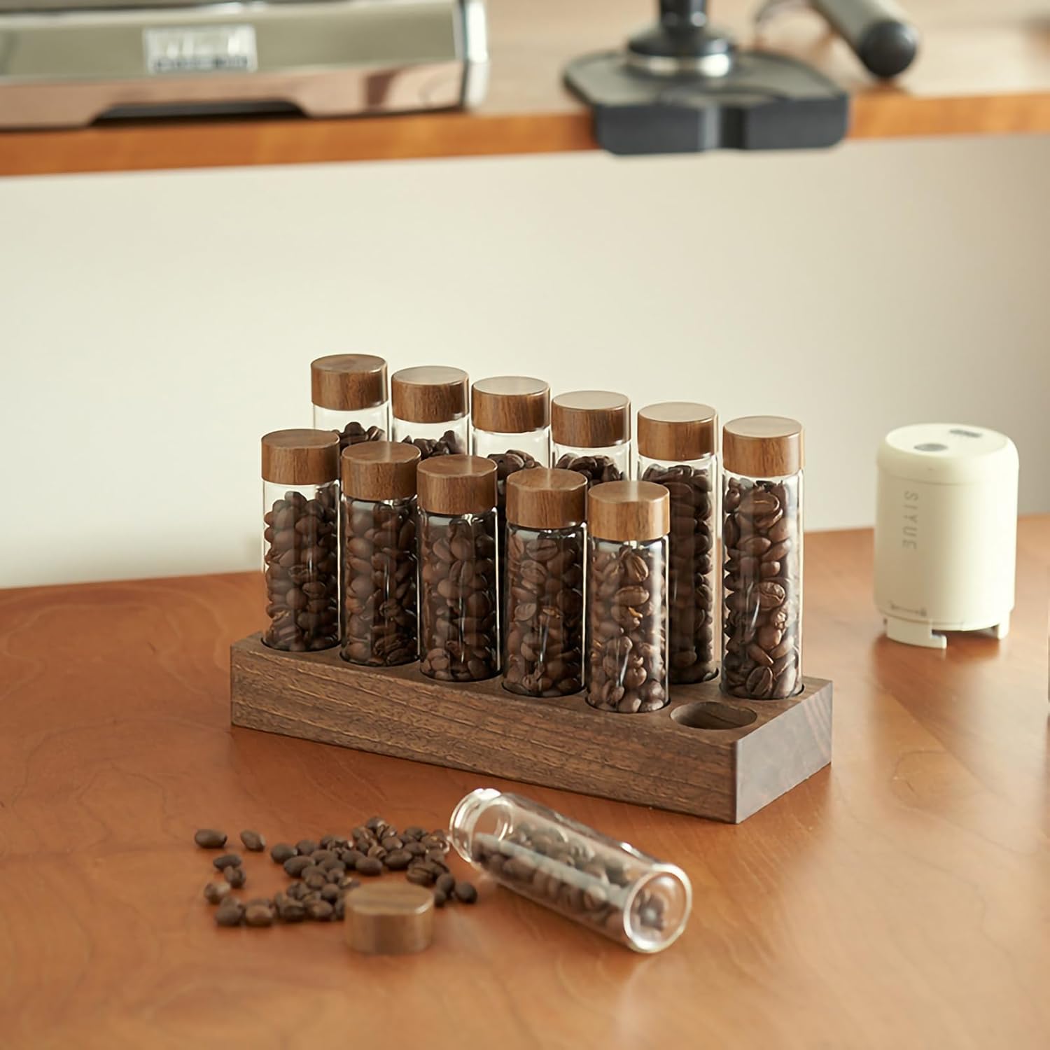 - Kaffeebohnen-Aufbewahrungssets: Sie erhalten 12 luftdichte Kaffeedosen, 1 Walnussholz-Ständer und 1 Trichter. Eine schöne Kombination und ausreichende Menge, um Ihren Aufbewahrungsbedarf im täglichen Leben zu decken und sie auch mit anderen zu teilen.