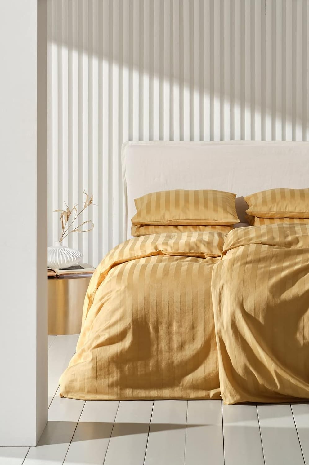 - Bettbezug aus einfarbigem Satin mit Ton in Ton gehaltenen Webstreifen
