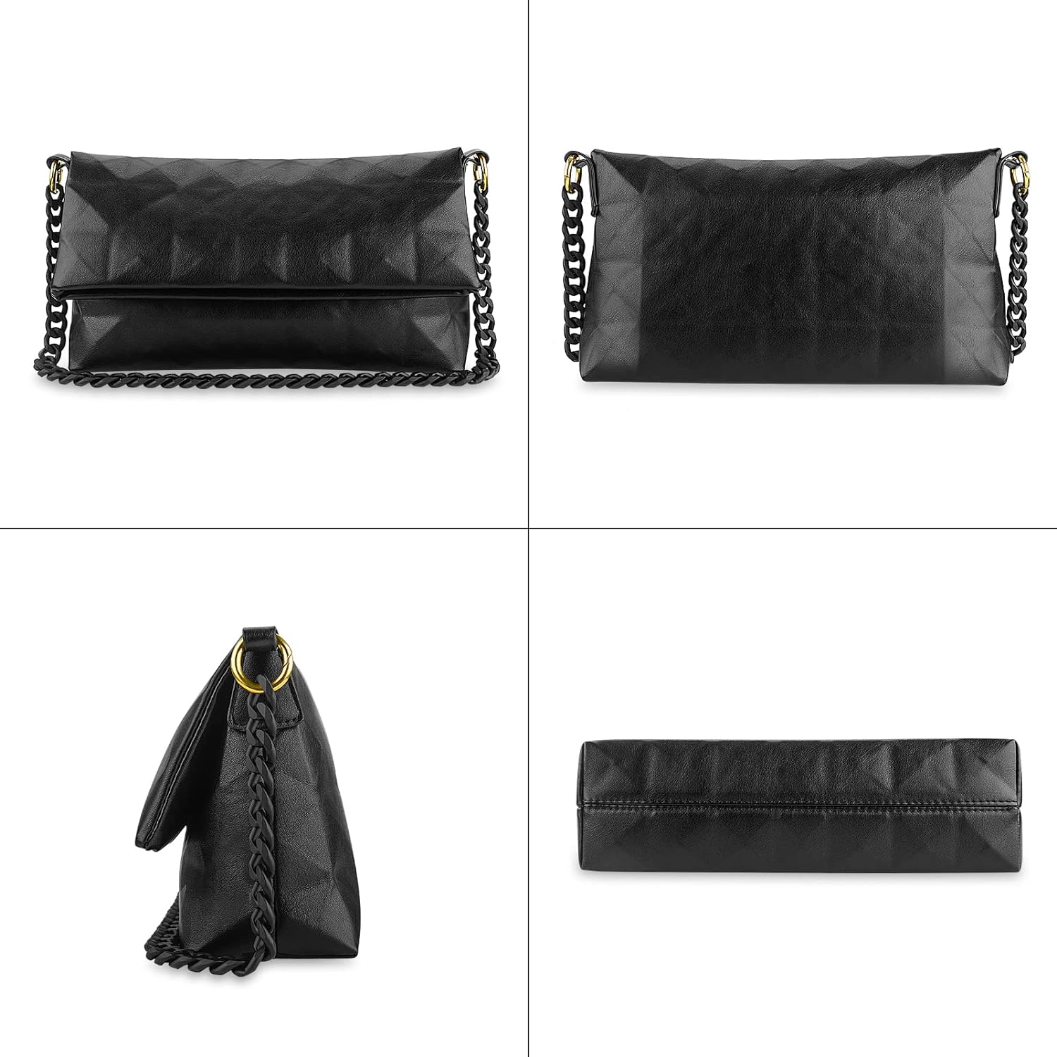 PRODUKTBESCHREIBUNGEN Merkmale der geometrischen Tasche: - Schwarze Clutch-Handtaschen mit faltbarem Magnetverschluss, einfach zu öffnen und zu schliessen. - Crossbody Umhängetasche geeignet für den täglichen Gebrauch, wie Einkaufen, Dating, Partynächte und so weiter. Hinweis: - Nur schwarze Schultertasche, andere nicht im Lieferumfang enthalten. Lieferumfang: - Geometrische Crossbody-Taschen, andere nicht im Lieferumfang enthalten. Mehr