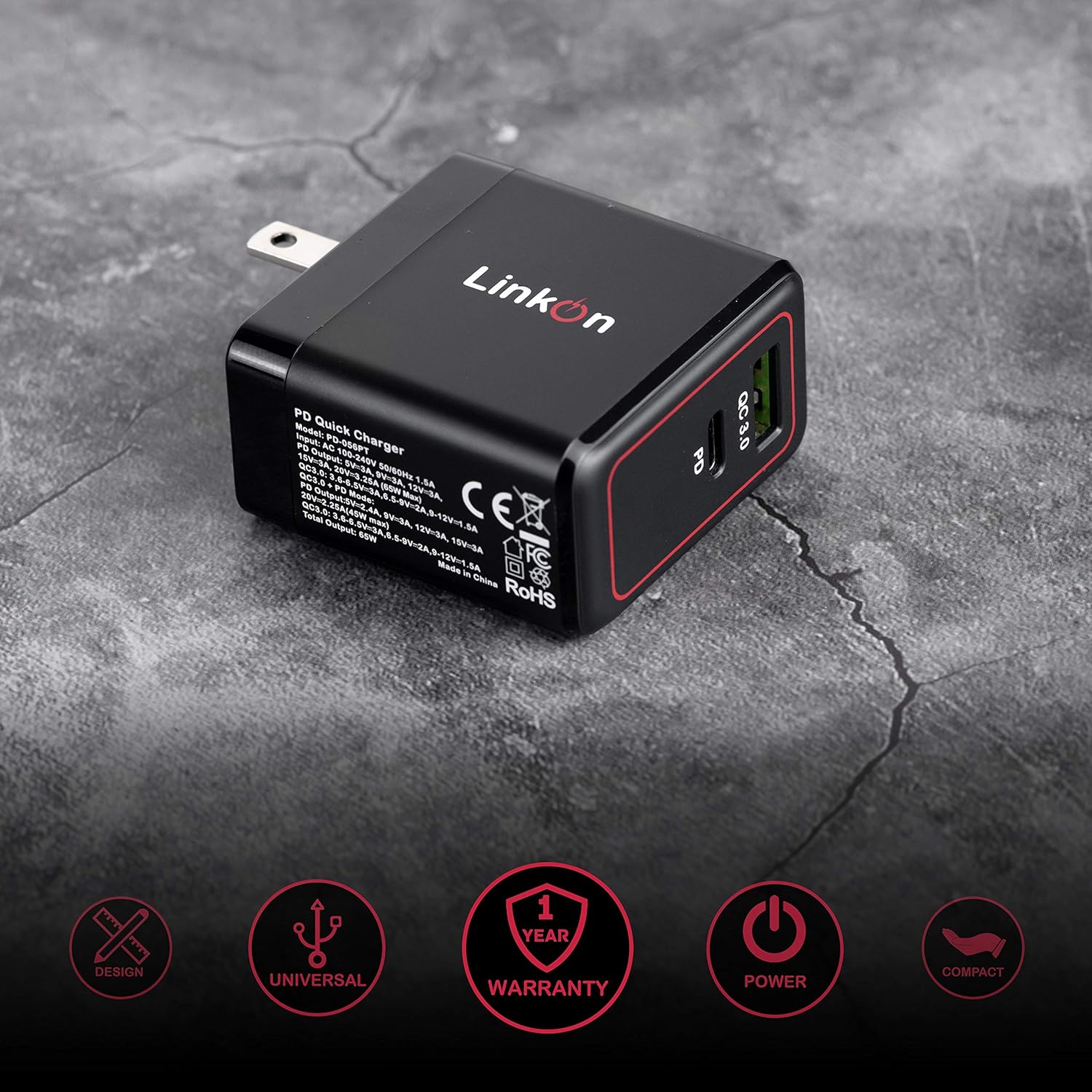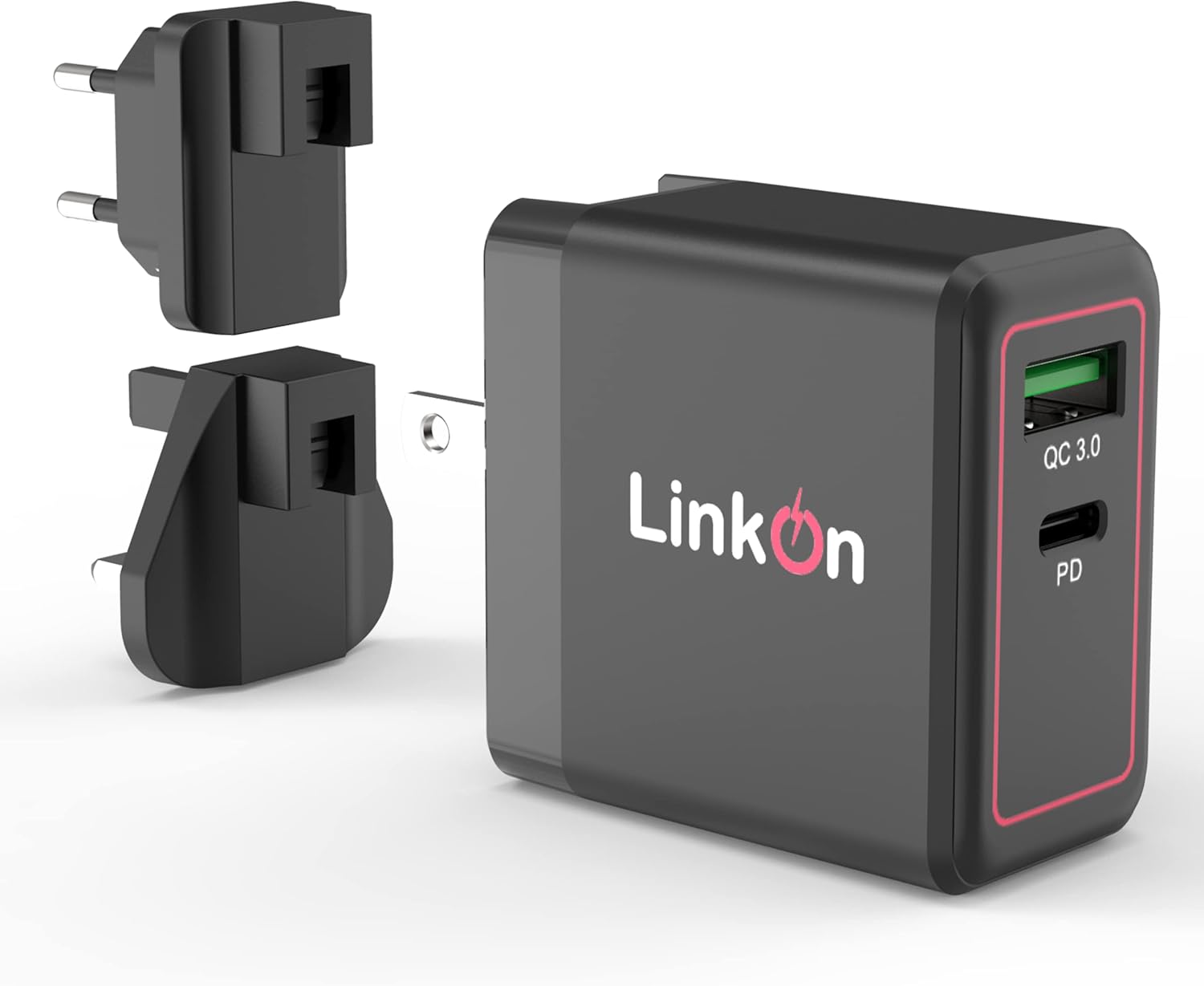 LinkOn Ganius 65W Wand-Ladegerät GaN Tech 65W USB-C PD3.0 PPS und 18W USB-A QC4.0+ Kompatibel mit Ma