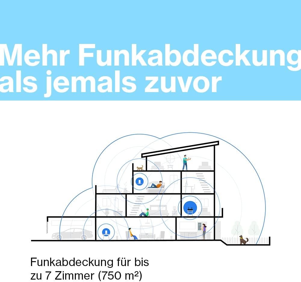 - In Kombination mit WiFi 6 eignet sich die Intelligent Mesh-Technologi für alle Smart-Home-Geräte und ermöglicht auf bis 760 m² zu Hause und sogar im Garten WLAN-Geschwindigkeiten im Gigabit-Bereich
