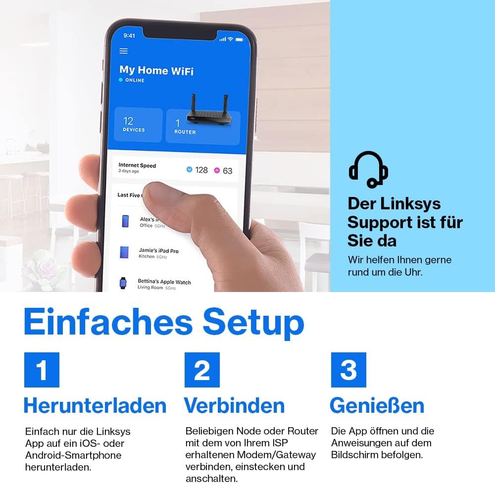 - Über die Linksys App können Sie die Nodes einrichten, das Heim-WLAN überwachen und steuern. Wir bieten Ihnen 3 Jahre Herstellergarantie und technischen Support über das Internet oder Telefon