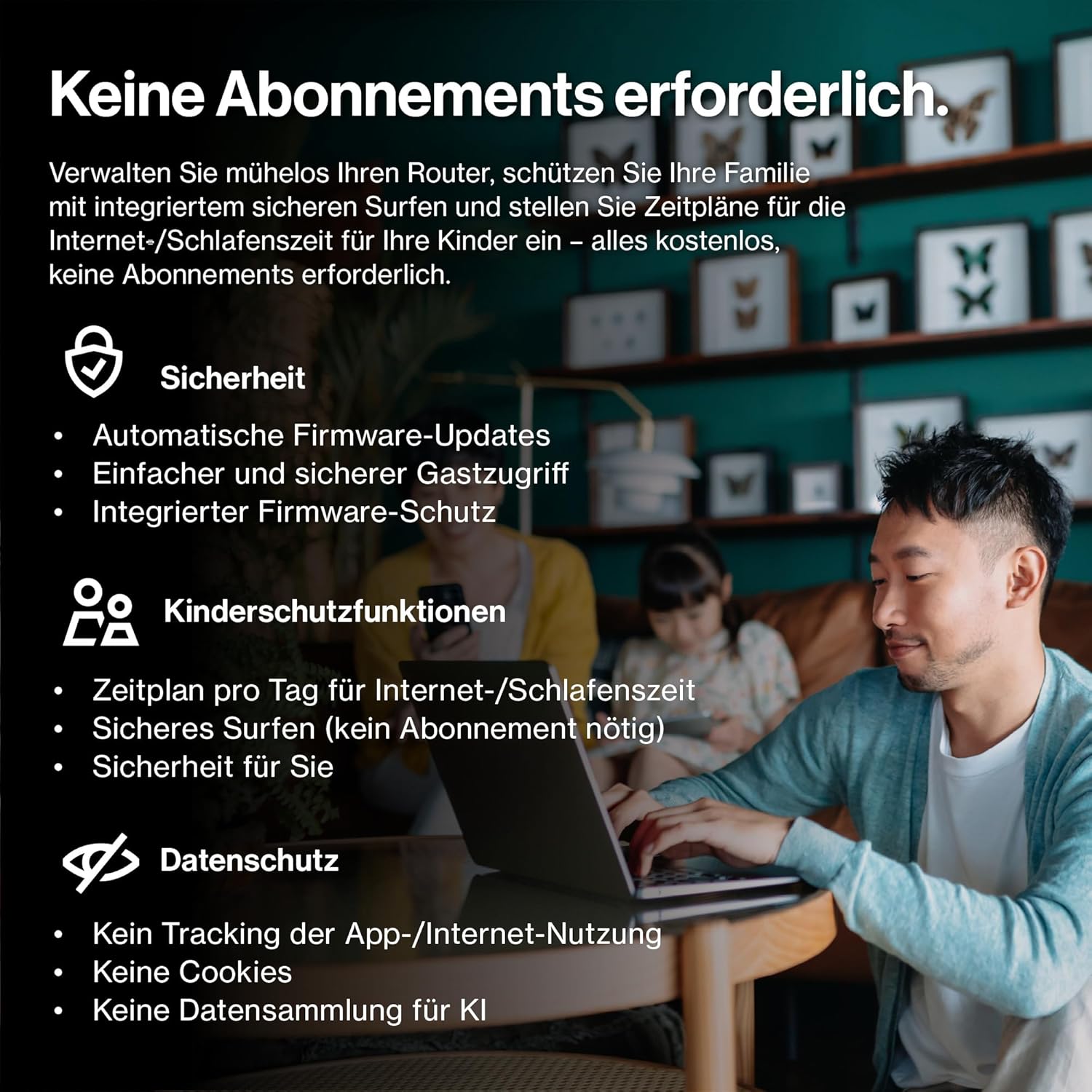 - KEINE ABONNEMENTS ERFORDERLICH – Das sichere Surfen ist Standard. Verwalten Sie Ihren Router und schützen Sie Ihre Familie online – alles ohne zusätzliche Gebühr