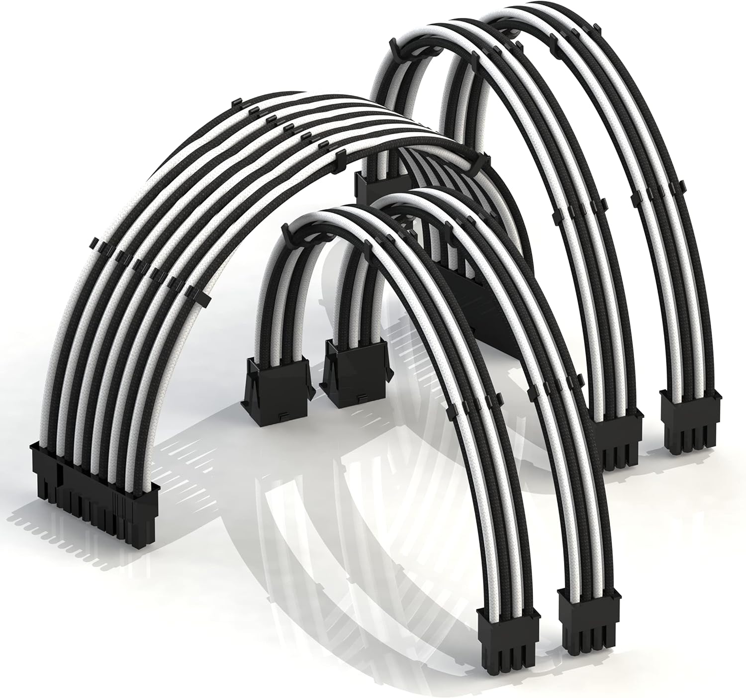 • 【2 x CPU & 2 x GPU】2 x 4+4-Pin-CPU-Stromkabel und 2 x 6+2-Pin-GPU-Stromkabel gebündelt in einem Paket. Geeignet für neue CPU & GPU. Enthält auch ein 24-Pin-Motherboard-Stromkabel; 【Vivid】Modifizieren Sie Ihren Aufbau mit 17 einzigartigen
