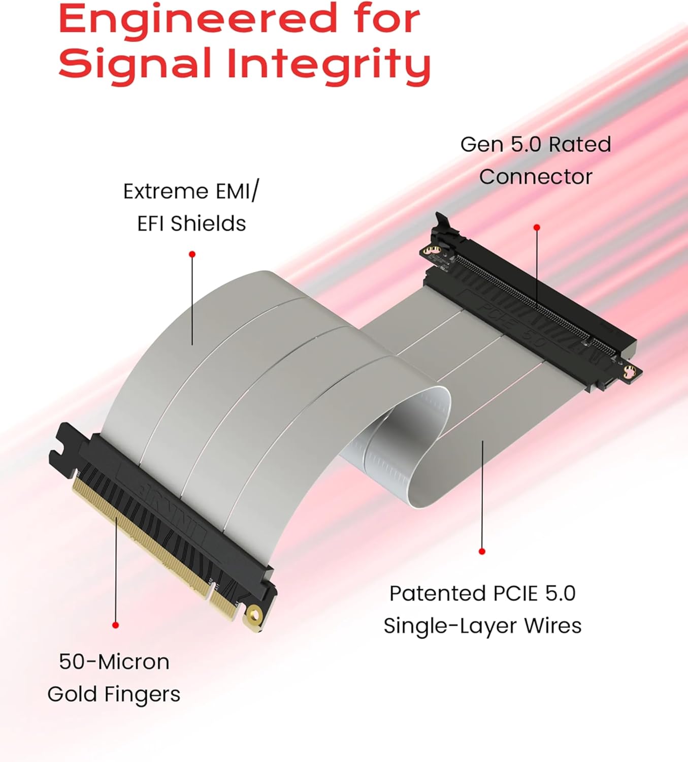 - Ersetzt Gen 4 und Gen 3 Riser-Kabel und ermöglicht die vertikale GPU-Anzeige, um Ihre Hardware ohne Einbussen bei der Leistung von Gen 5 zu präsentieren. Verbessert die Luftzirkulation, verlängert die Lebensdauer der GPU und bietet Platz für eine