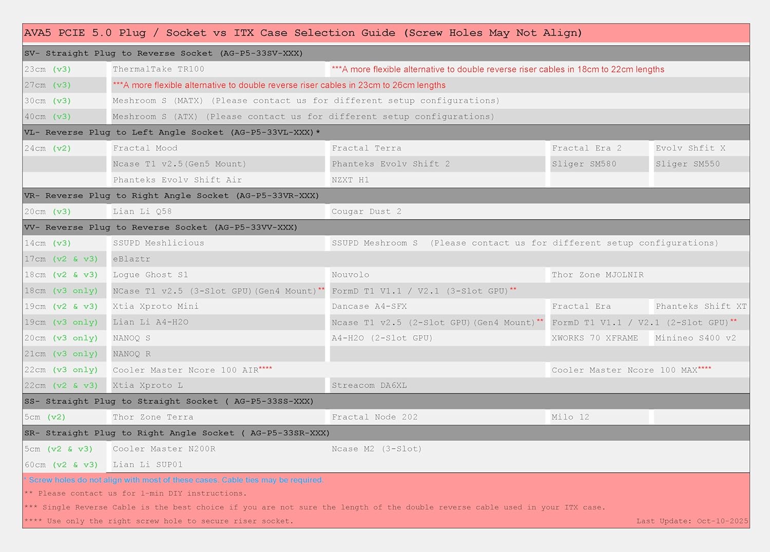 - Siehe unten die Kompatibilitätsliste. Um die benötigte Kabellänge für Ihr Gehäuse zu bestimmen, können Sie mit einer Schnur den Abstand vom PCIe-Steckplatz des Mainboards zur PCIe-Platine Ihrer GPU messen. Wenn Sie unsicher sind, senden Sie uns