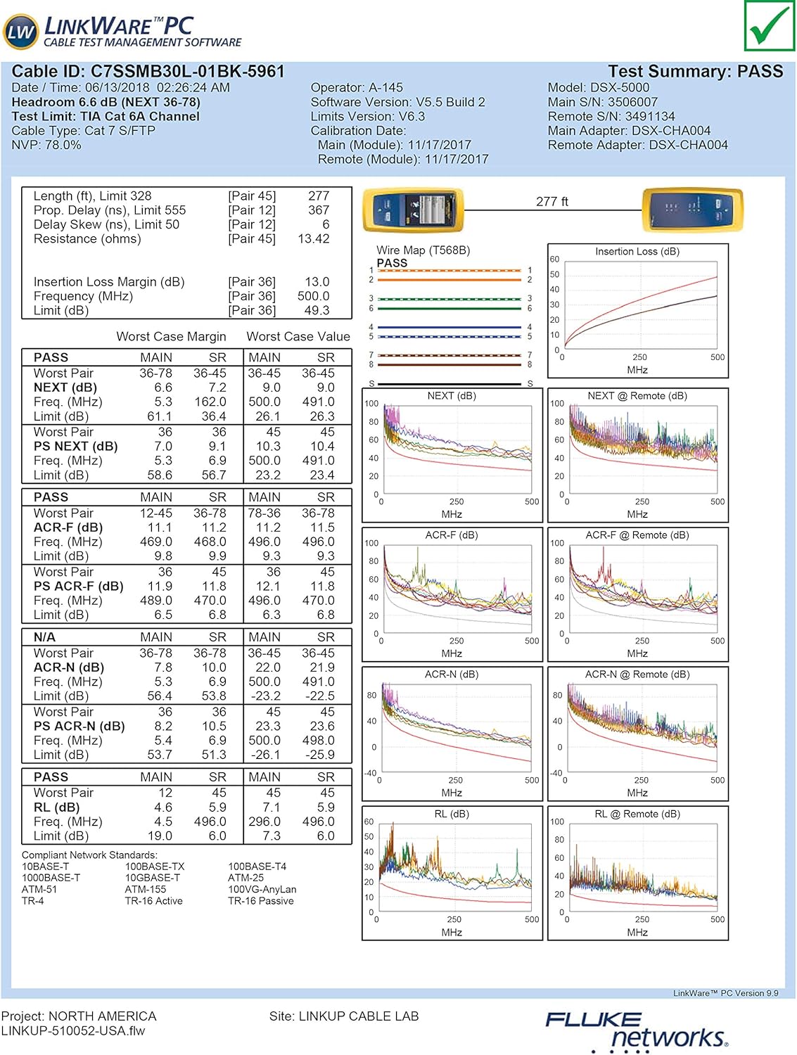 - [Getestet mit dem Versiv CableAnalyzer] Testbericht in jedem Paket enthalten. *** Der Testbericht zeigt Cat6A, da DSX-8000 keine Cat7-Teststandards bietet. Daher wurden Cat6A-Standards verwendet (sowohl Cat6A als auch Cat7 sind bis zu 10 Gbit/s). Das