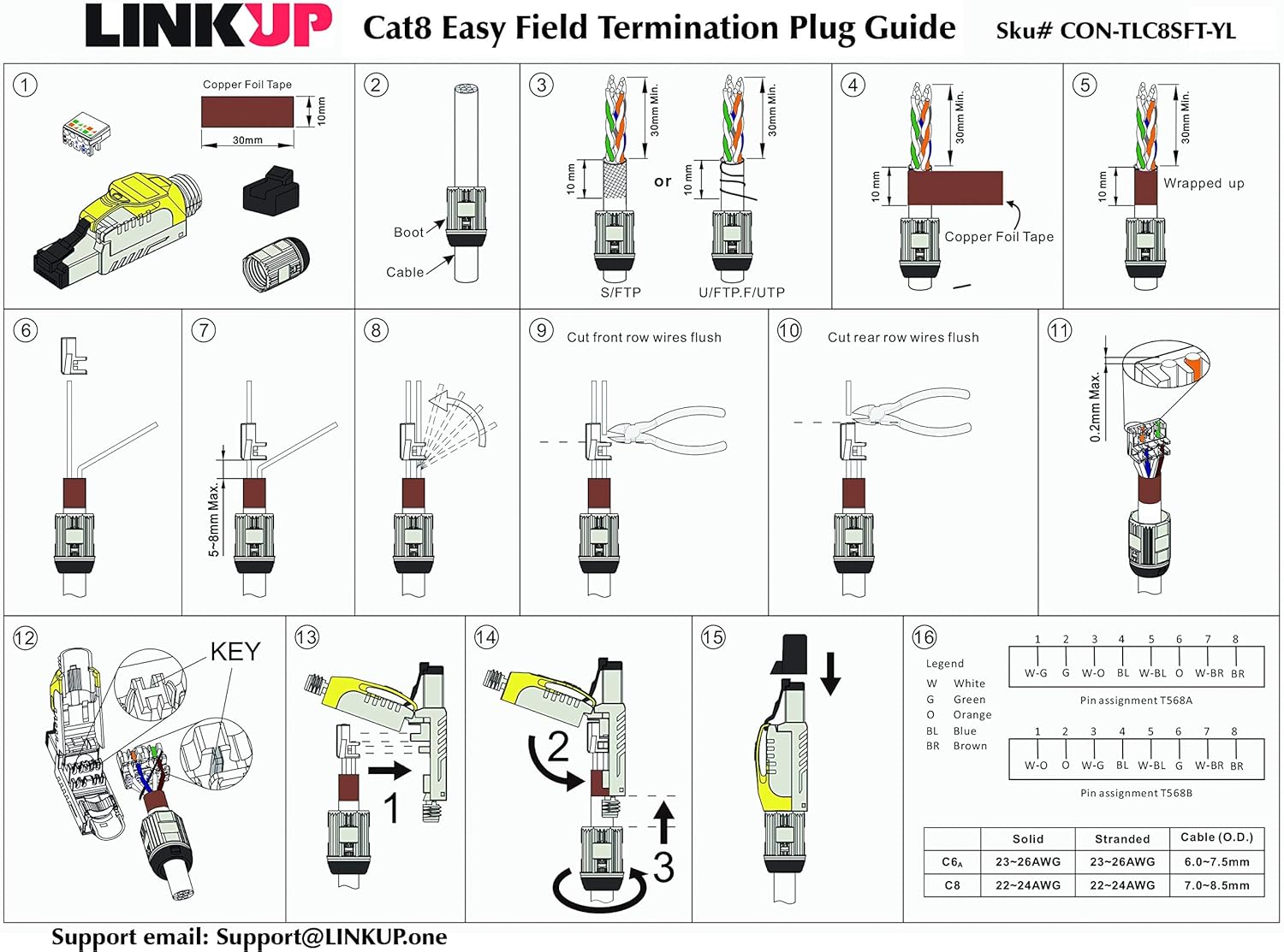 - 【Echte Cat8-Geschwindigkeit】LINKUP Cat8 RJ45 24K vergoldete Feldabschluss-Steckverbinder mit voller Spezifikation unterstützen 40G-Geschwindigkeiten bei 2000MHz; perfekt für Ultra-High-Speed-Anwendungen.