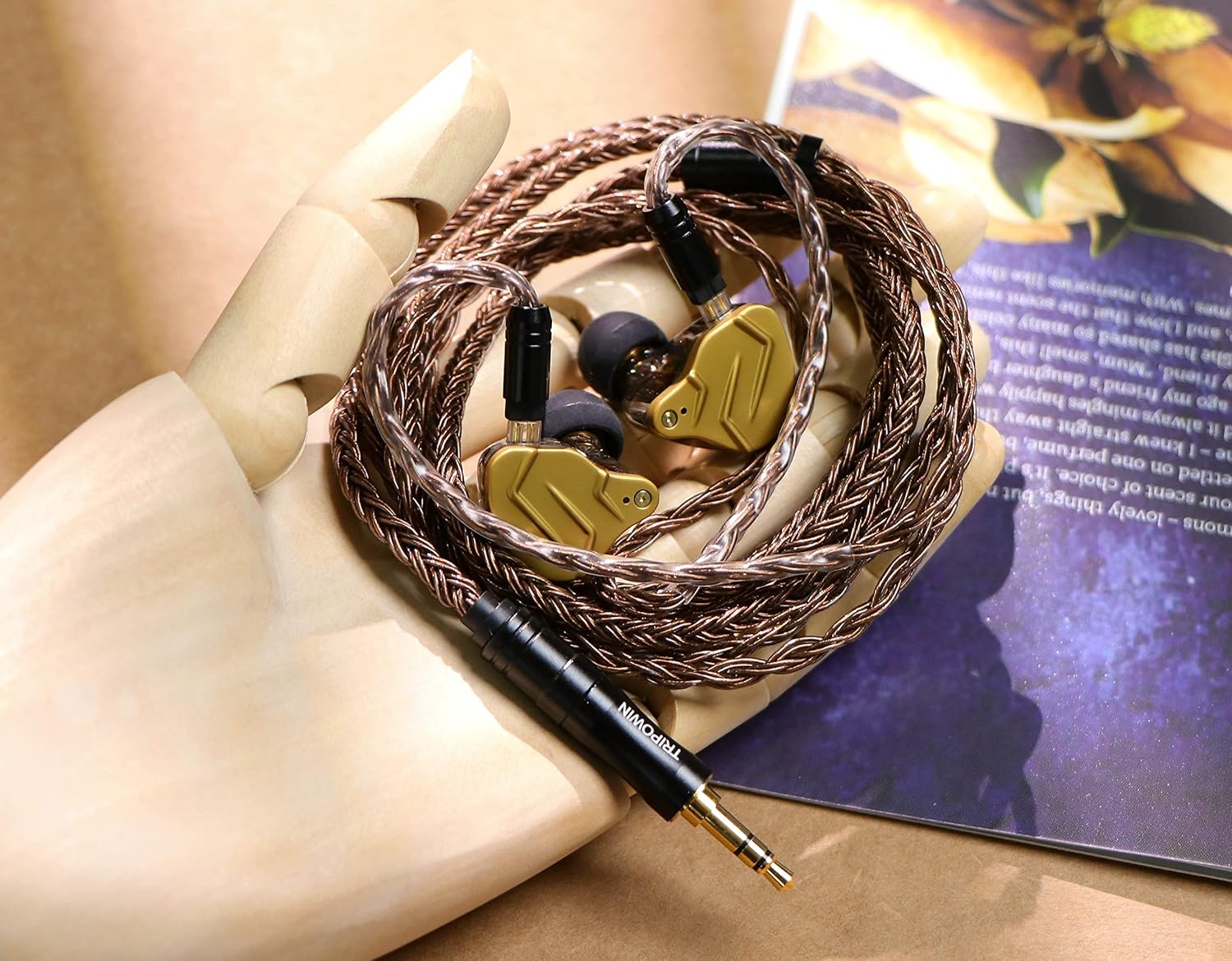• 【3-in-1 Cable (changeable 3.5mm/2.5mm/4.4mm plug Included)】Tripowin Amber adopts the 3-in-1 (3.5mm/2.5mm/4.4mm plug) lightweight gold-plated plug exclusively developed and designed by Tripowin, which is refined and practical, allowing you to switch