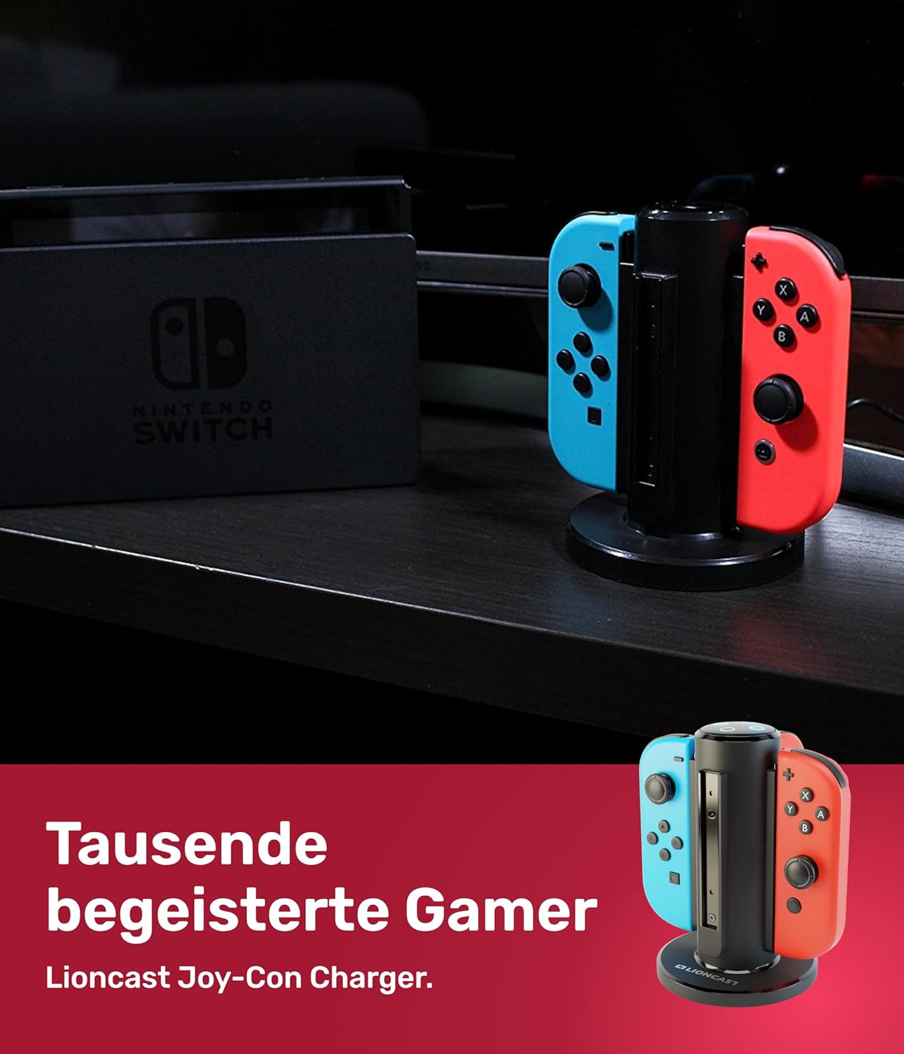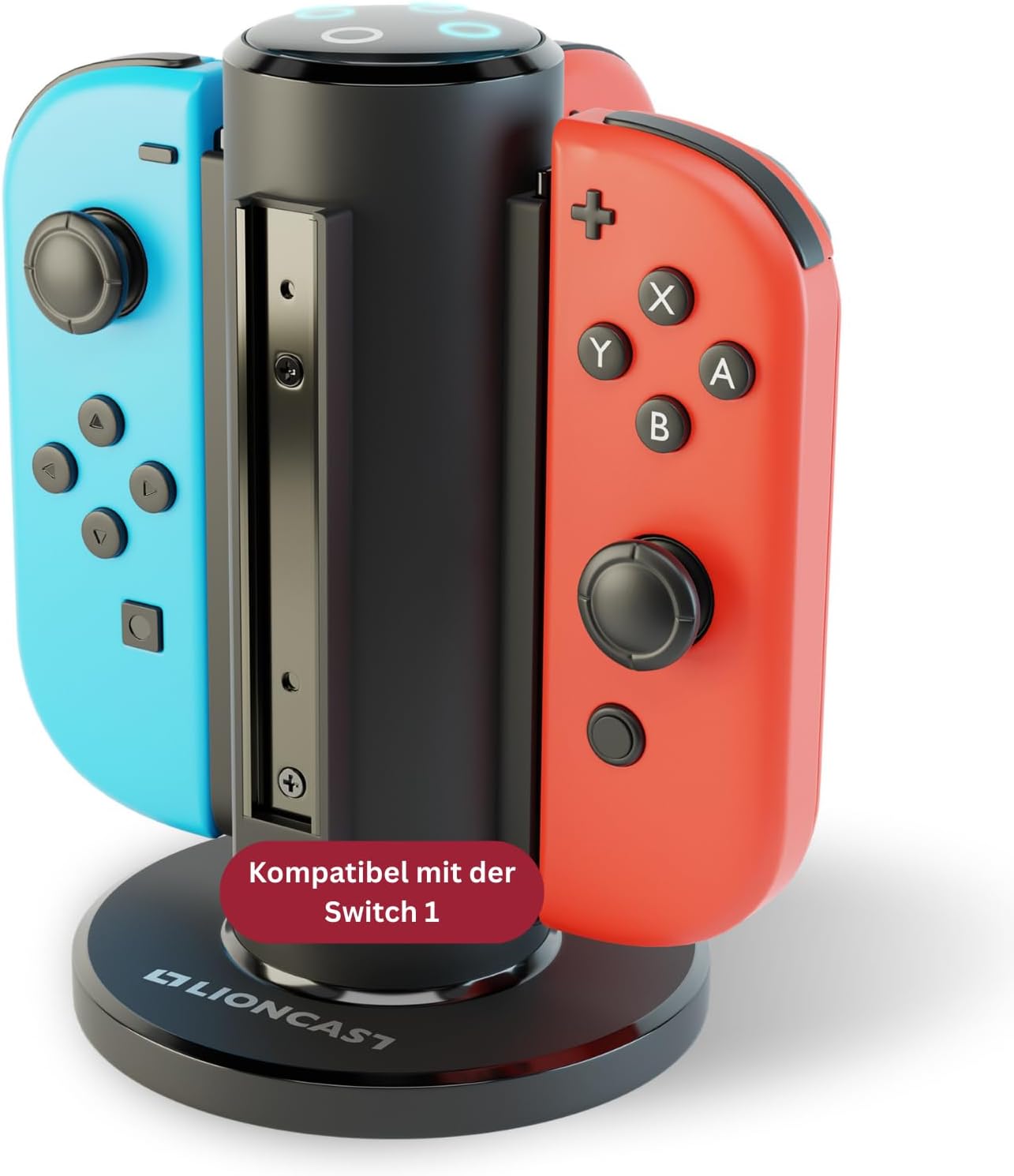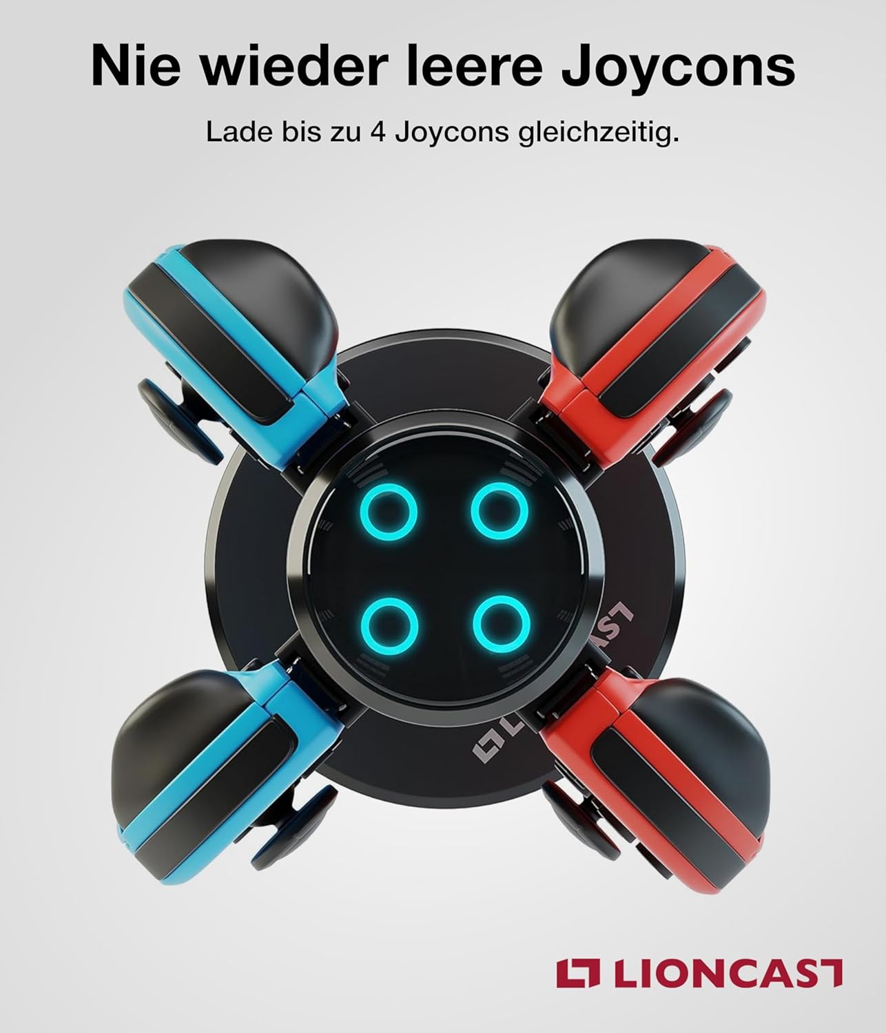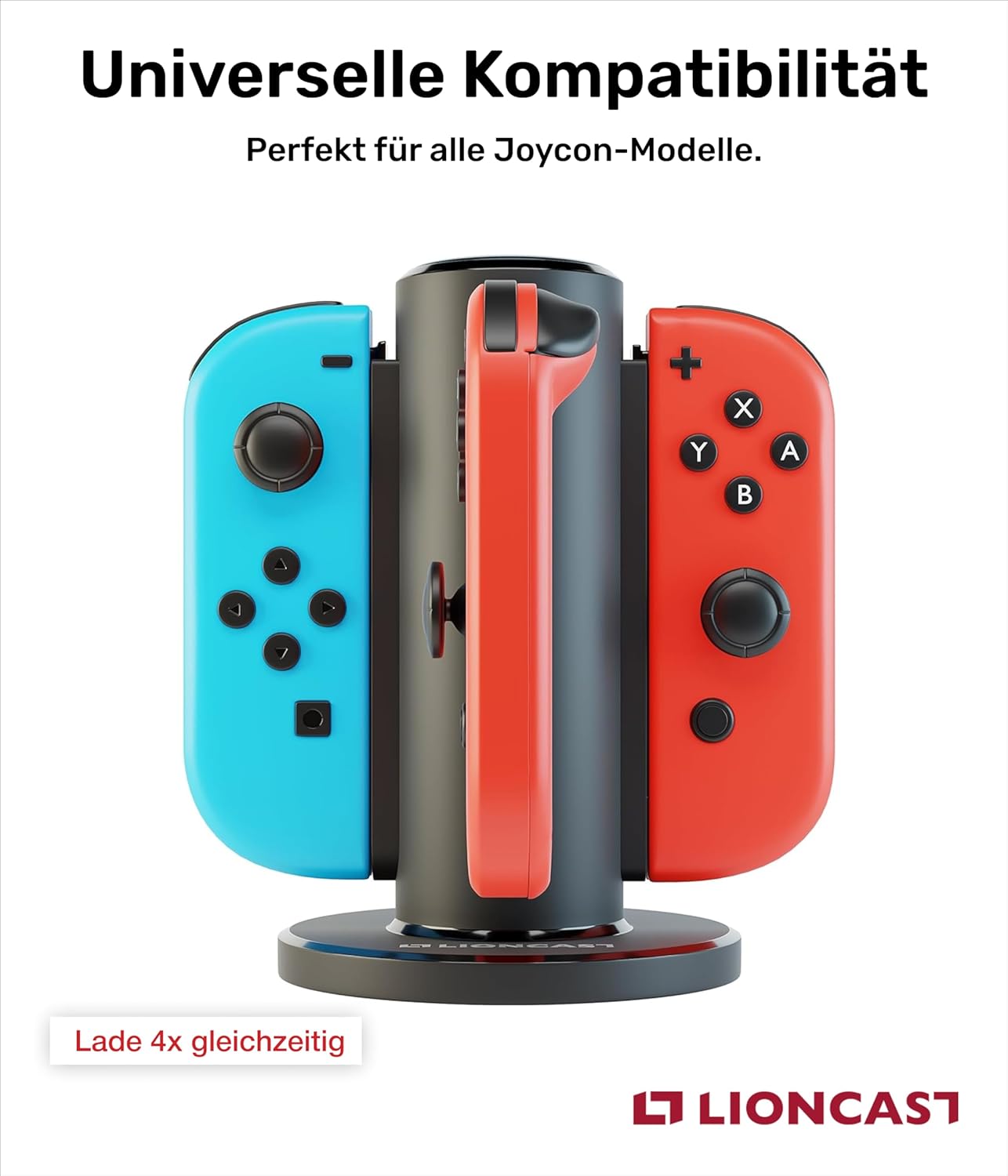 - EIN LADEGERÄT FÜR 4: Das Lioncast Quad-Ladegerät ist in der Lage, 4 Nintendo Switch Joy-Cons gleichzeitig zu laden. So müssen Sie keine Joy-Con Controller austauschen wenn Sie nur die Konsole verwenden.