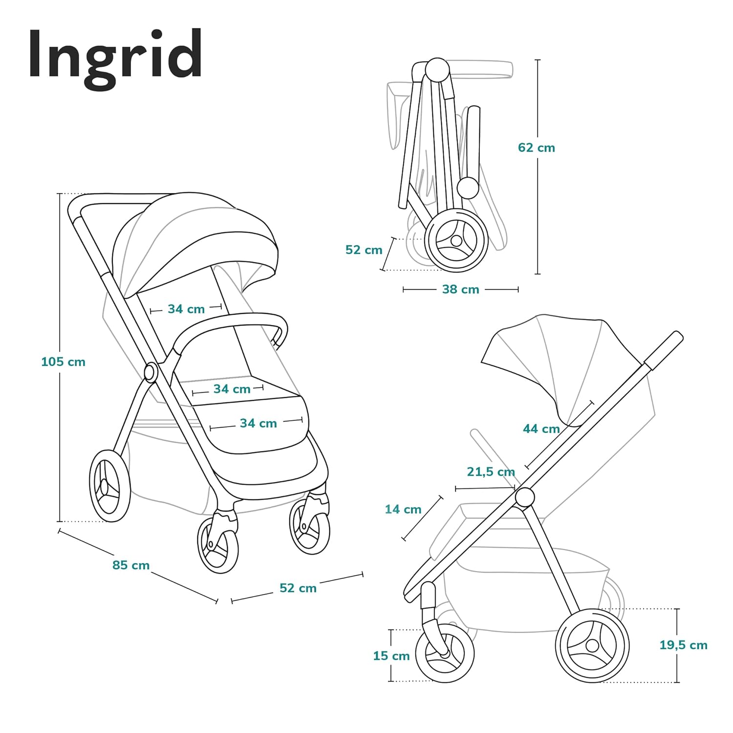 - EINHÄNDIGES ZUSAMMENKLAPPEN: Der Kinderwagen INGRID ist ein Buggy, der sich praktisch selbst zusammenfaltet. Dank der automatischen Klappfunktion faltet sich der Kinderwagen mit einem Knopfdruck automatisch auf ein kompaktes Mass von 52 cm x 38 cm x 62